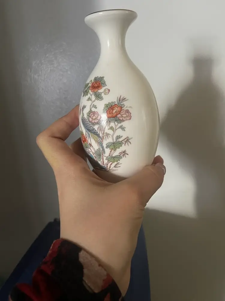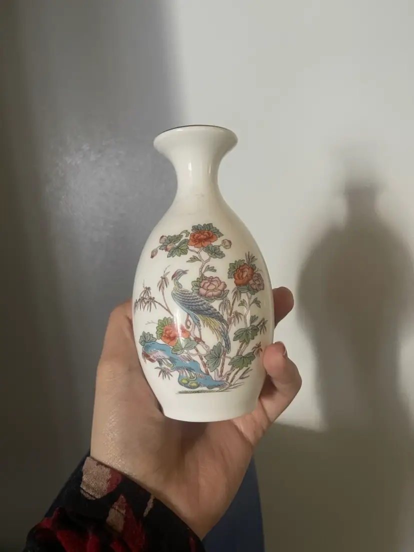 This is a bone china piece with beautiful intricate artwork on either side. This is a vase that is super rare. Amazing quality of artwork, and it is a beautifully crafted vase.