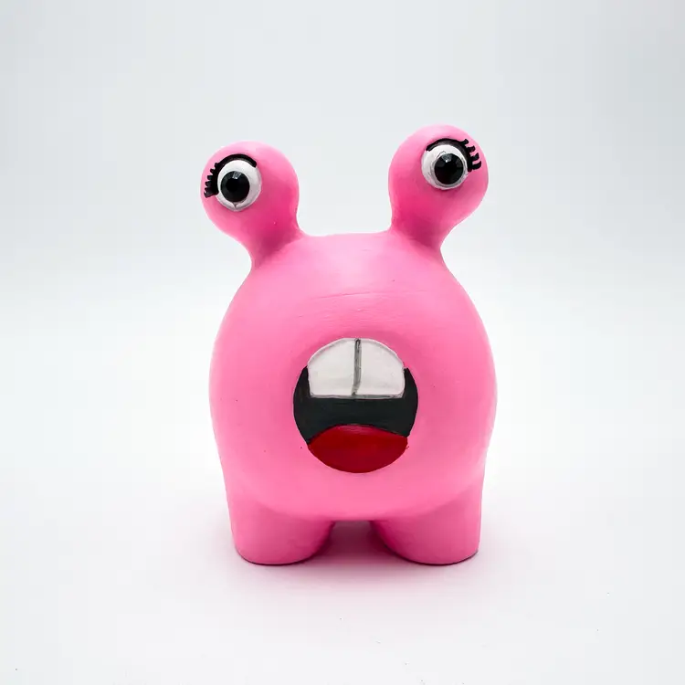 New, hand painted condition, see all photos Ceramic form, hand painted by me Acrylic paint, sealed, acrylic gem eyes Signed by me and named "Boobie" in honor of breast cancer awareness