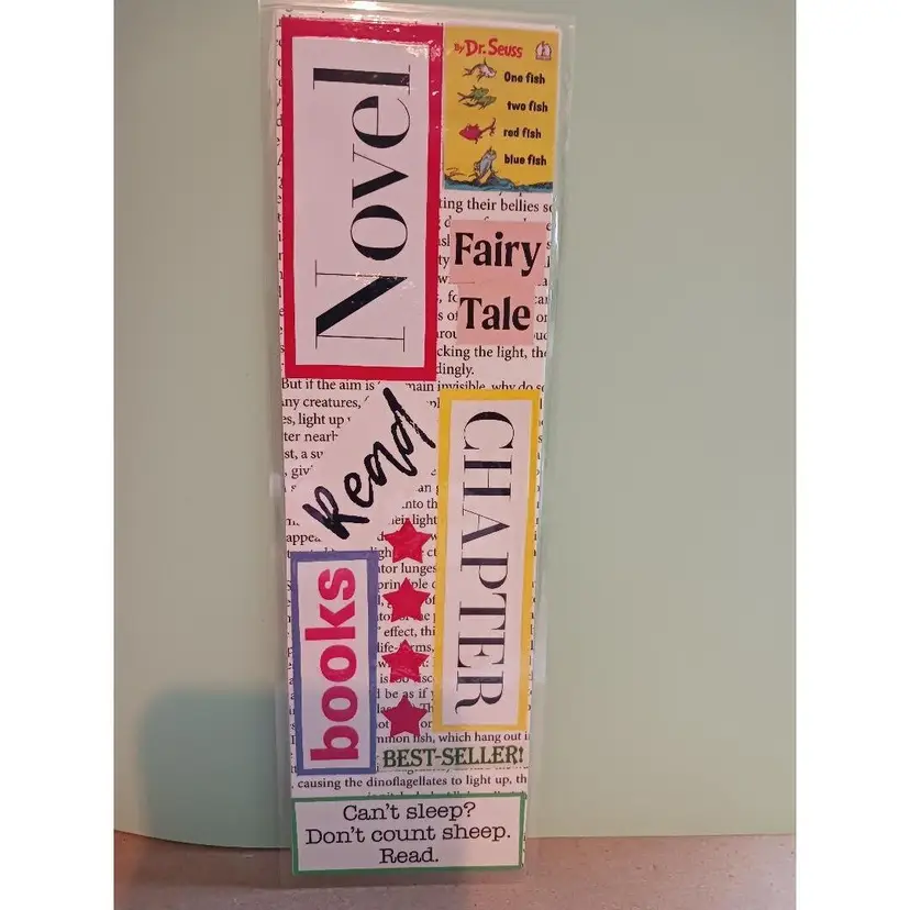 I create bookmarks and vision boards from words and pictures cut out of magazines. Some of the magazines date back to the 1940s! It is my goal to use only recycled found materials, and not buy anything. Occasionally I can't find a word, like NikNax, and have to cheat and type it and print it out.