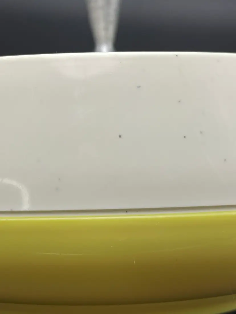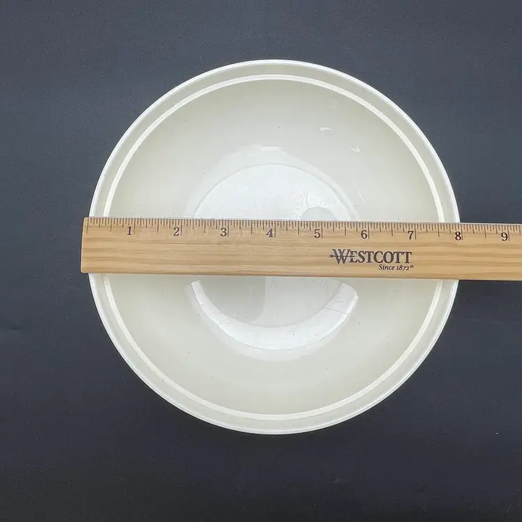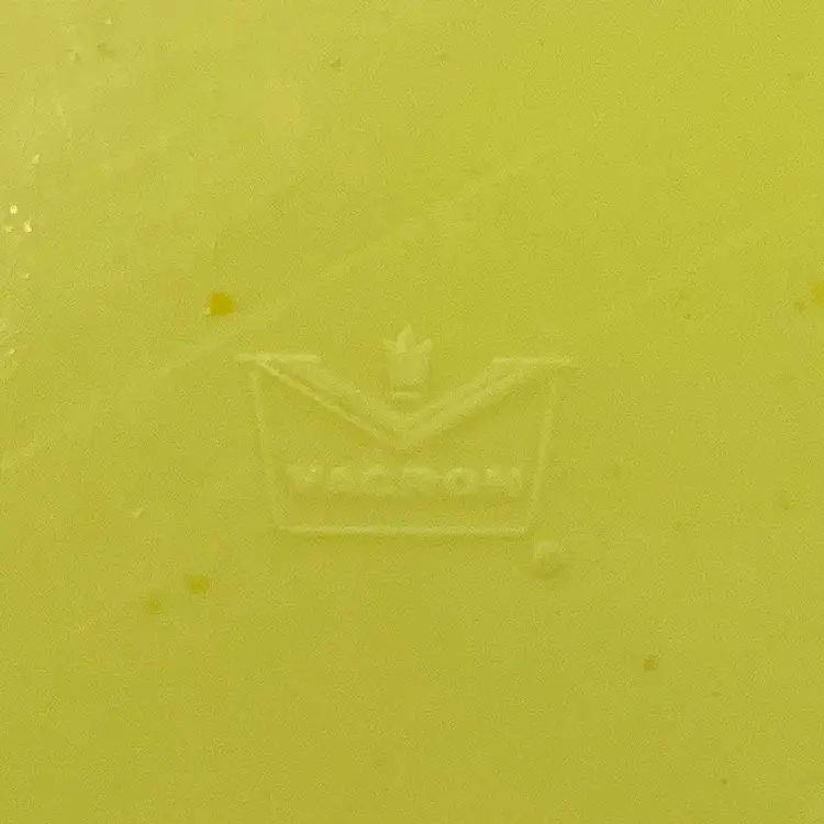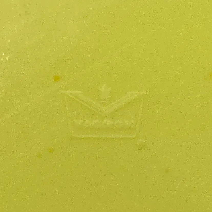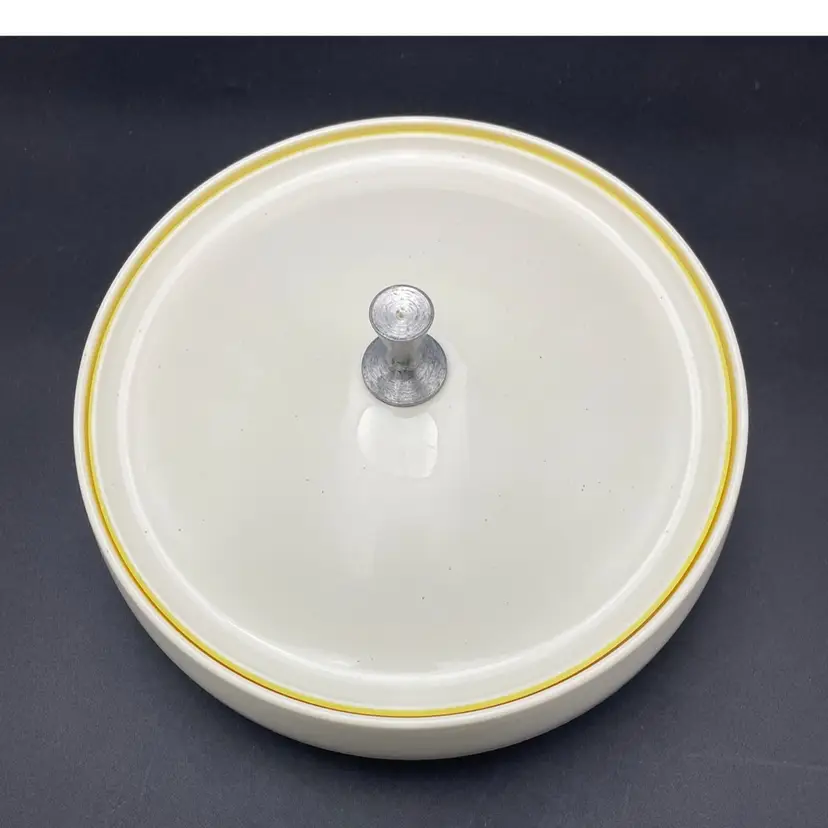 This is a mid century Bopp-Decker Plastics Inc Vacron covered serving dish in atomic yellow. Made in the USA. Measures approximately 5.25" tall including the lid x 8" across. No major flaws.