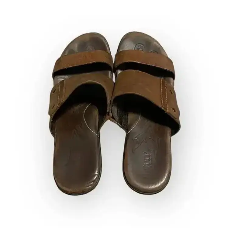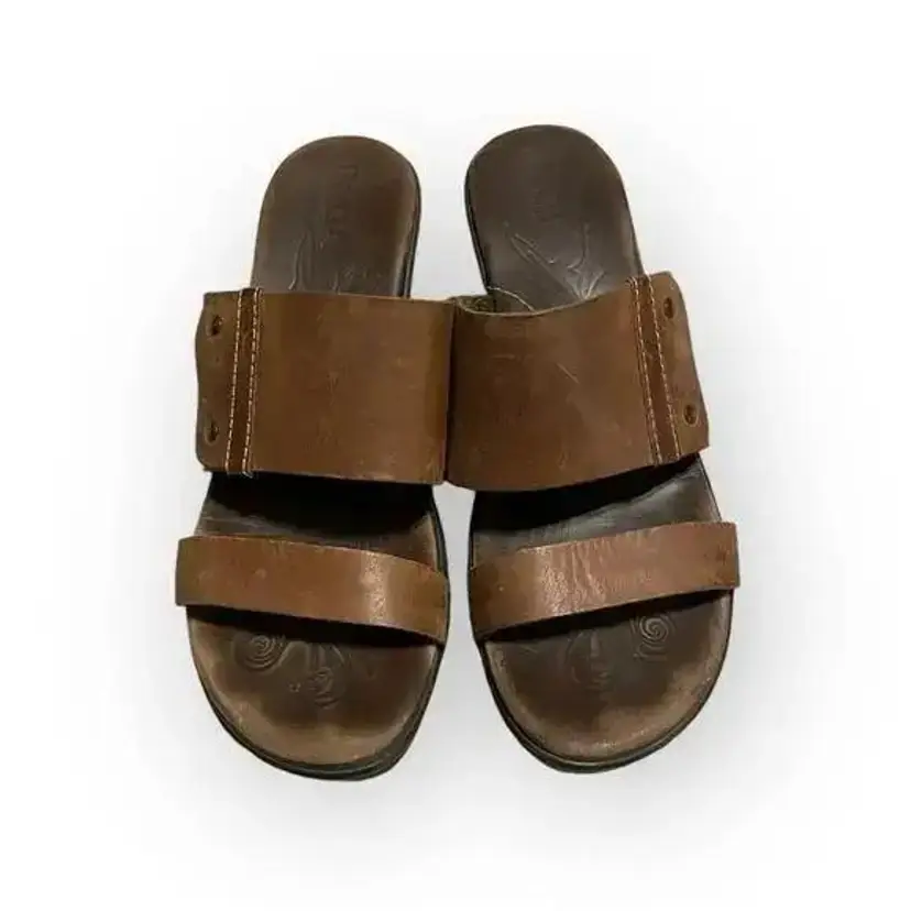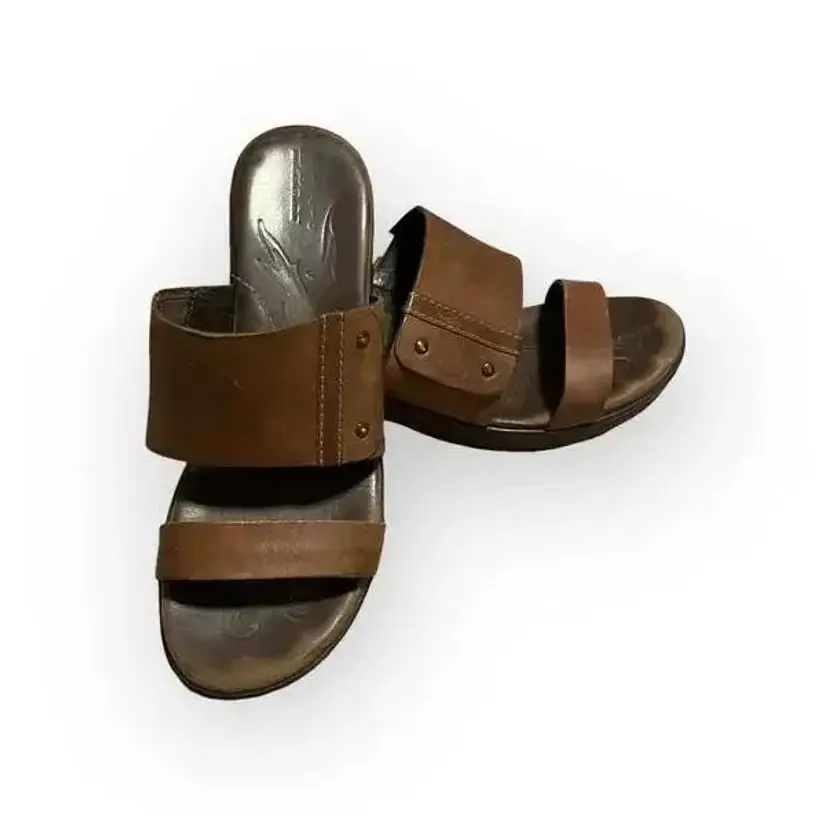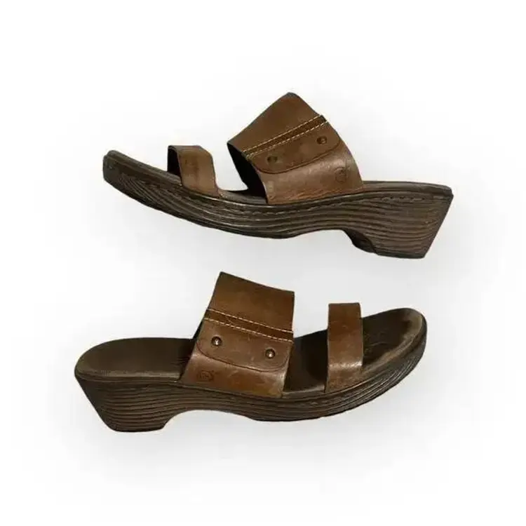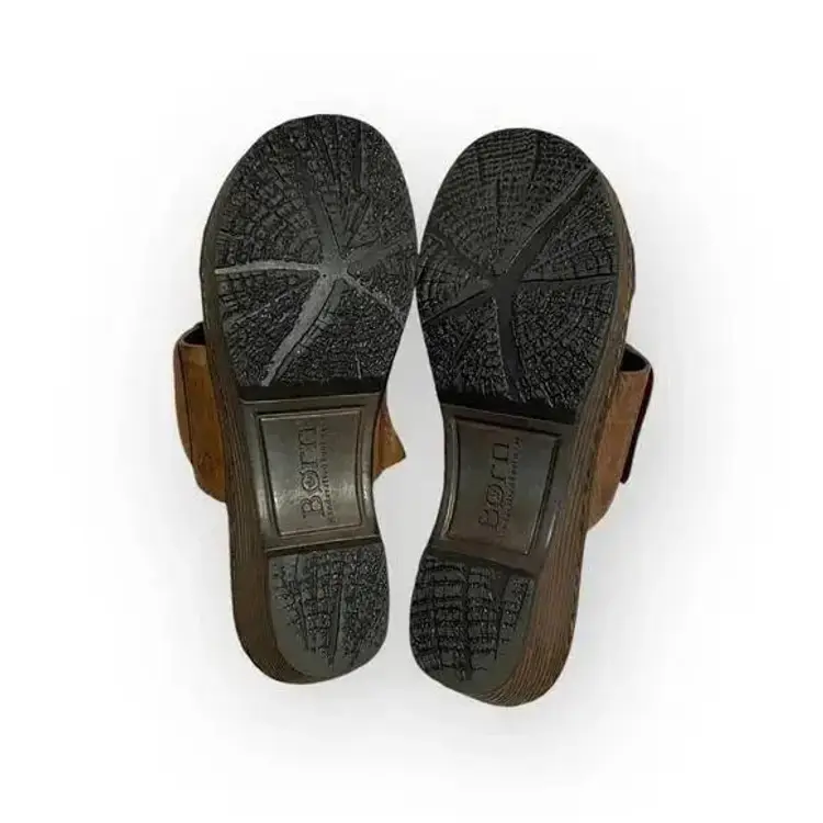 These sandals are pre-loved but stil have alot of life left. Complete your formal or casual ensemble with the Born Daylin. Crafted with rich, soft, supple full grain leather upper, this trendy slide style women's sandal with steel shank gives extended durability and wear. There is an easy on/off silhouette for a correct fit. Featuring a leather inner lining, it provides optimum breathability and comfort. With a polyurethane outsole, it provides amazing traction control and balance on all kinds of surfaces and flexibility.