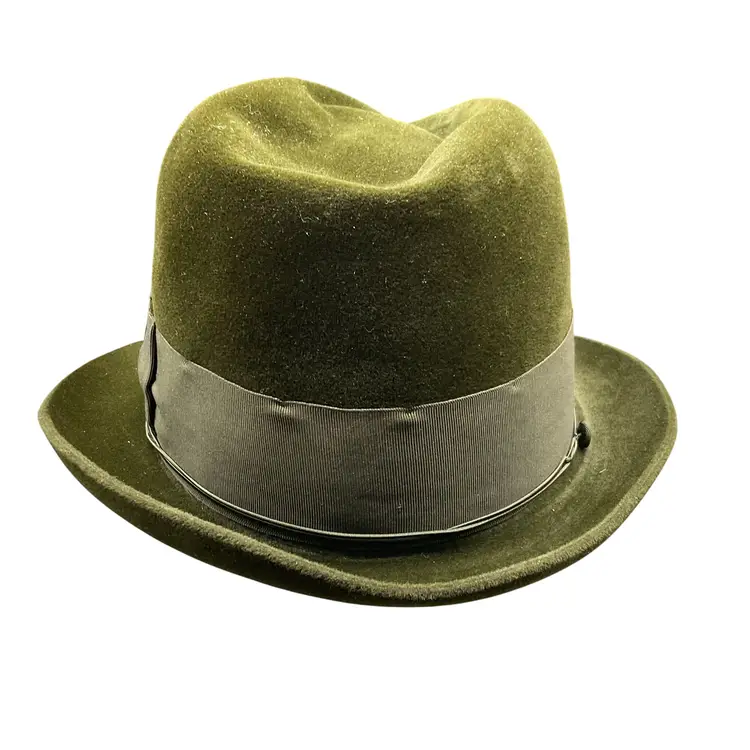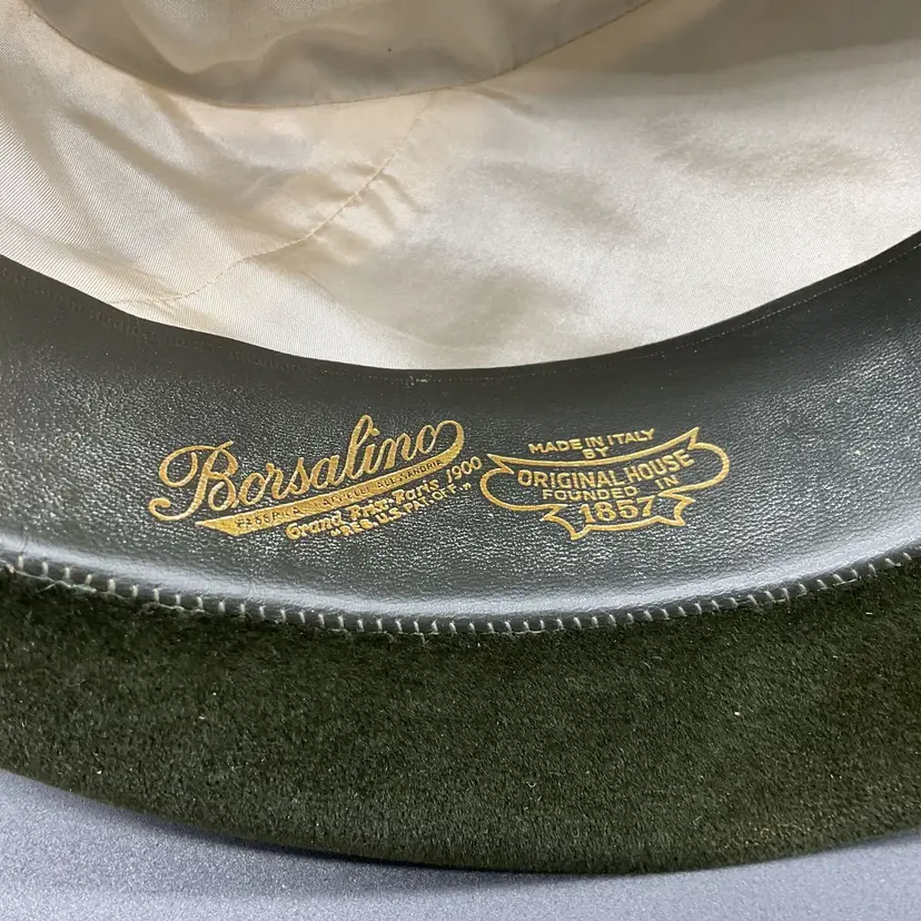Borsalino Alessandria Italy Olive Green Velour Felt Fedora With Box Sz 7.25