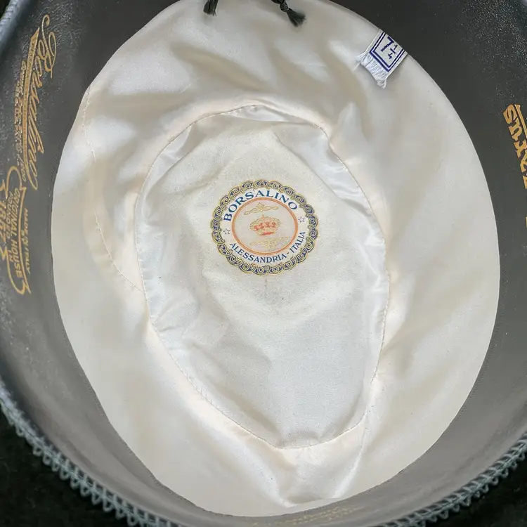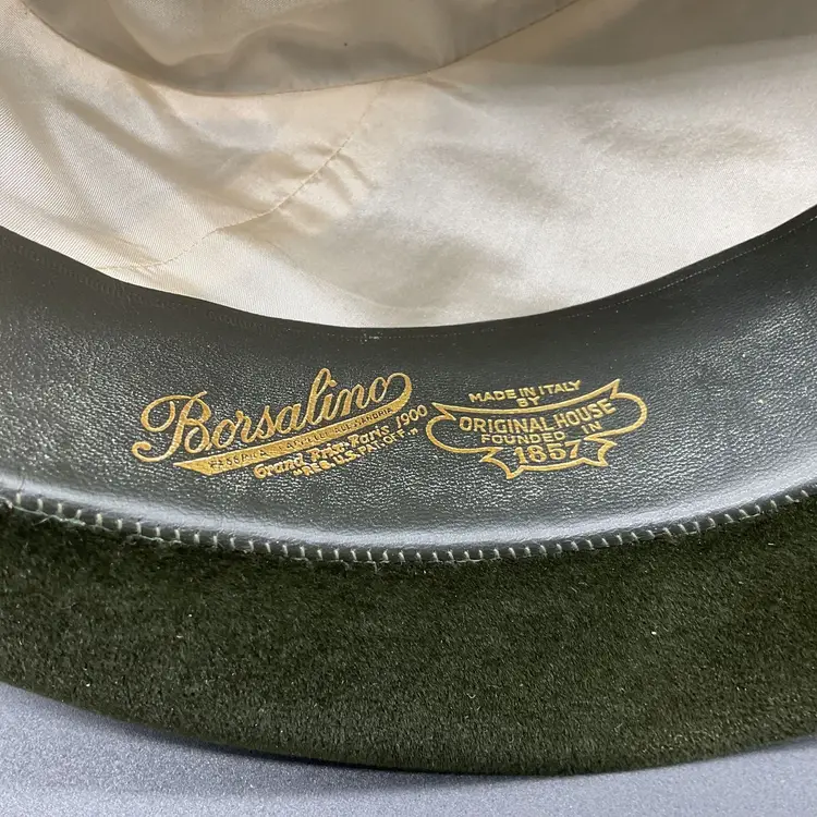 Impeccably cared for, stylish accessory in superior quality. This classy fedora from Borsalino is sure to win you over with its elegant lines. Deep indentations and a brim that is gallantly upturned at the edges characterize the sweeping fedora shape of this carefully crafted hat. 100% exquisite felt and a comfortably smooth lining ensure outstanding wearing comfort. Made in Alessandria, Italy.