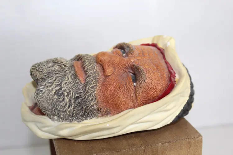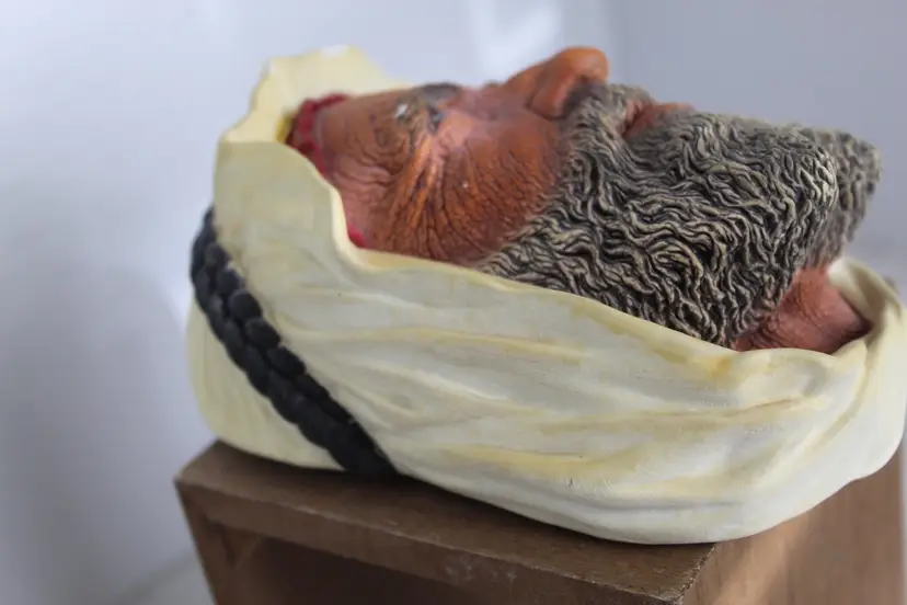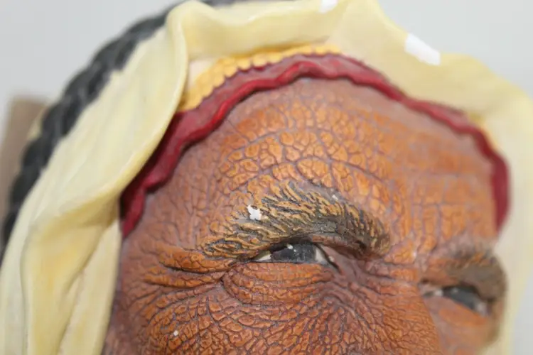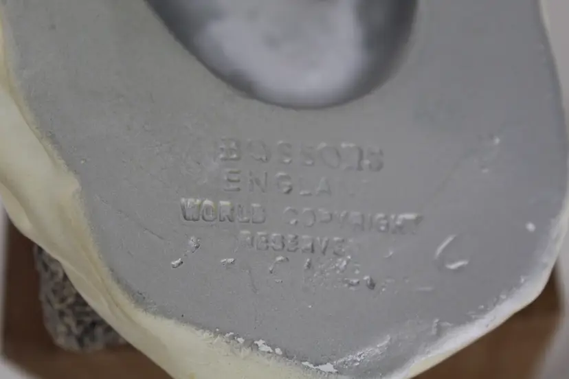 The product is a vintage Bossons of Congleton England chalkware figurine from 1959, depicting a Syrian man. Hand painted and signed by the artist, this medium-sized collectible features an ethnic style and a multicolor finish. Made in the United Kingdom, this figurine is a part of a collection of Bossons figurines, showcasing a unique production technique of mass production during the mid-20th century. It is a decorative and original piece perfect for all occasions, measuring 5 inches in length, 3.5 inches in width, and 2.75 inches in height, weighing 10.6 ounces.