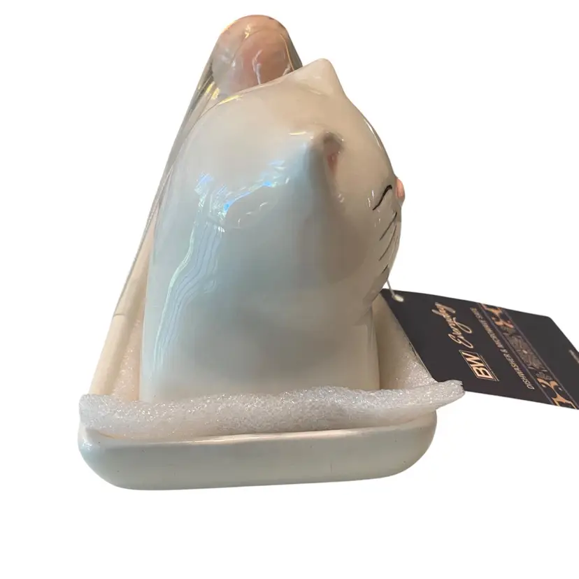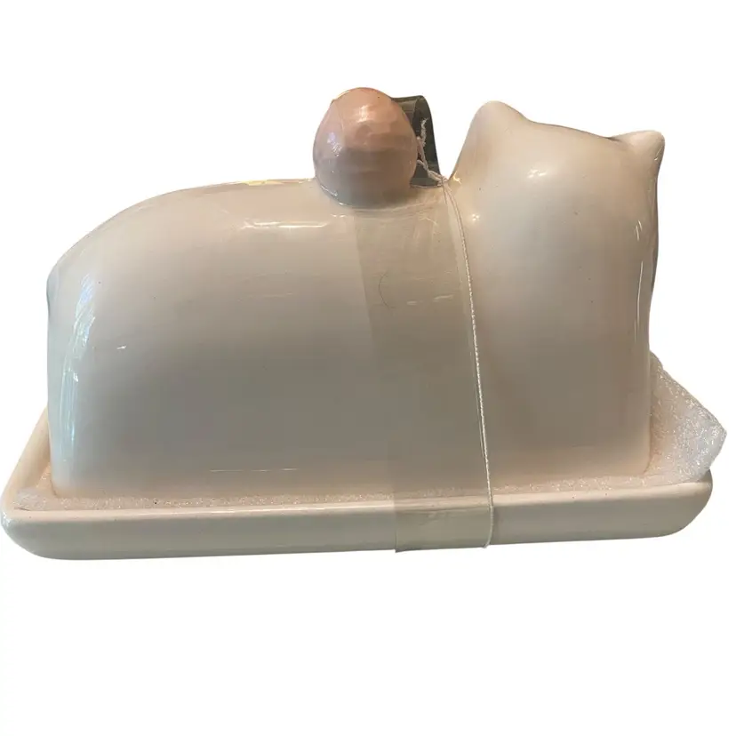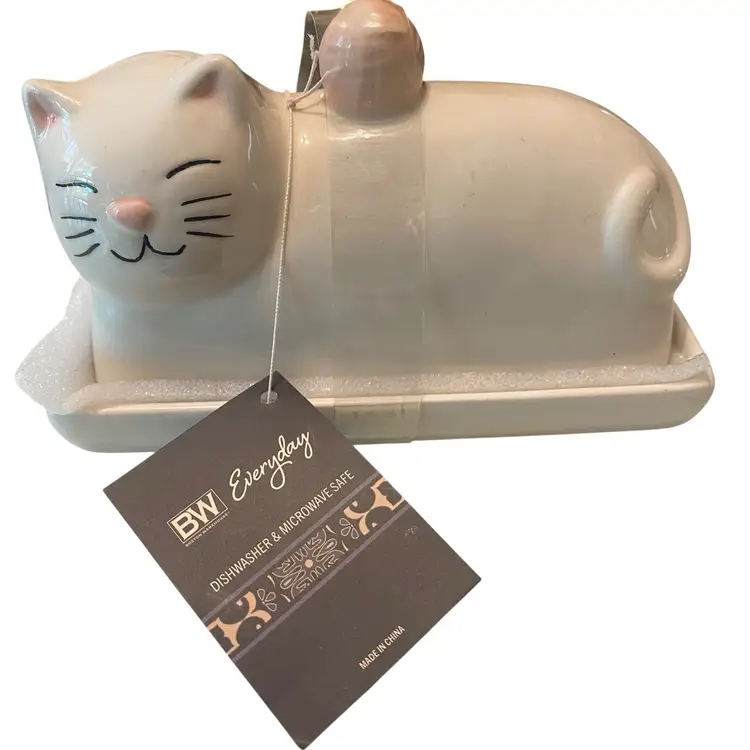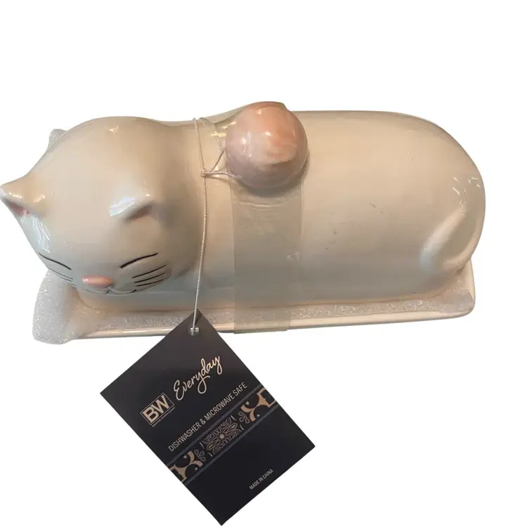 Boston Watehoyse Trading Co. ceramic kitty butter dish 6inL 4inT 3inW new with tag