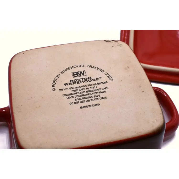 Please see the photos. The bottom states that it is oven safe to 375 degrees F. It is microwave and dishwasher (top rack) safe. Do not use on stove top or broiler. Do not use the lid in the oven.