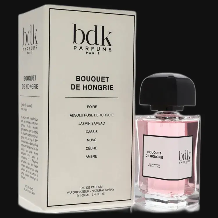 Bouquet De Hongrie Perfume by BDK Parfums, Fruity sweet and sparkling, bouquet de hongrie by the french fragrance house bdk parfums layers the tart and tantalizing over serene florals, warm wood and enveloping musk. Opening tones are a crisp and juicy blend of ripest strawberry, crisp pear and lovely green cassis. Fresh, clean turkish rose and shimmering jasmine bloom at the heart, followed by a sensual and tranquil, feminine finish of cedar, musk and alluring amber.