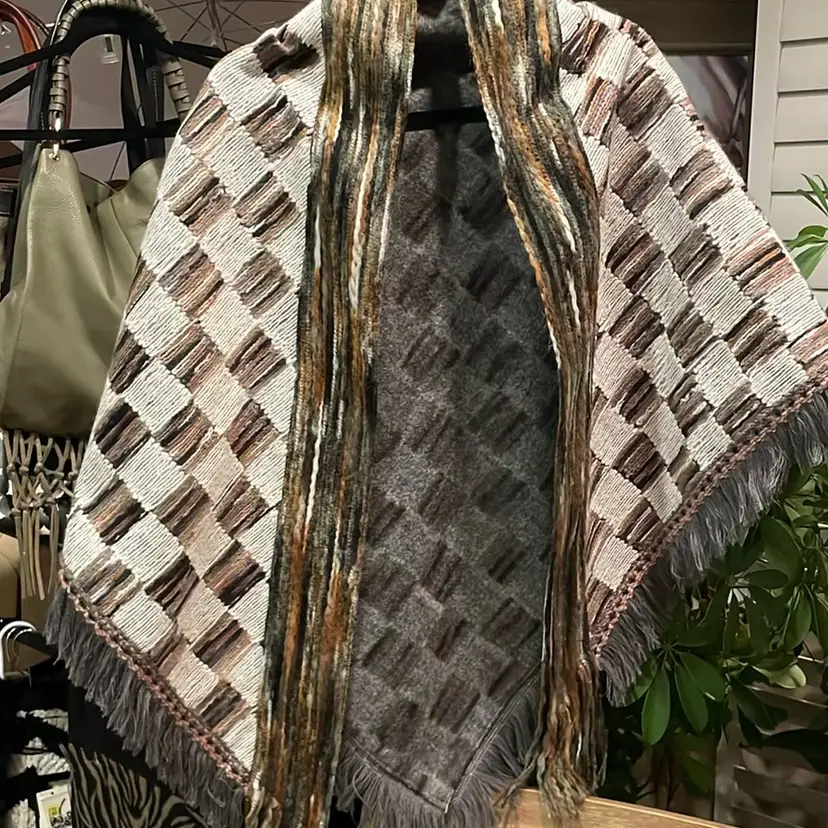Poncho like shawl just a great throw in looks good with jeans and boots