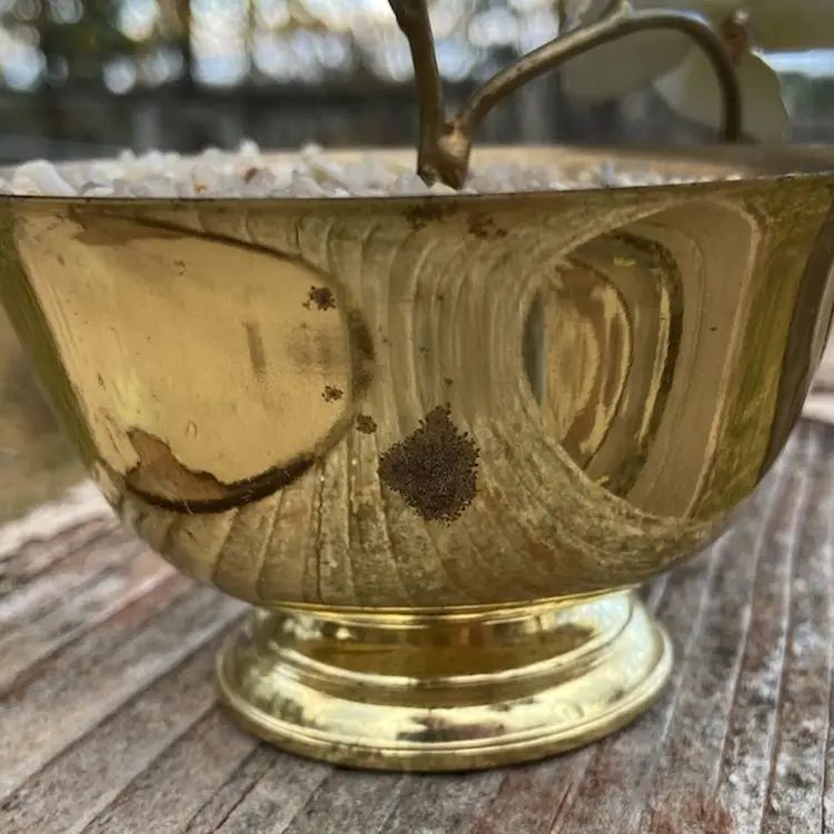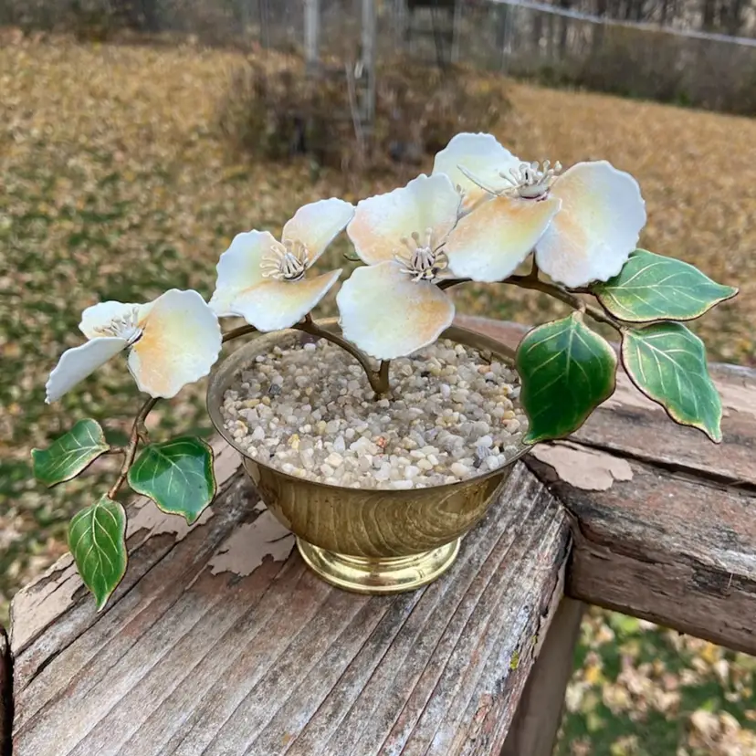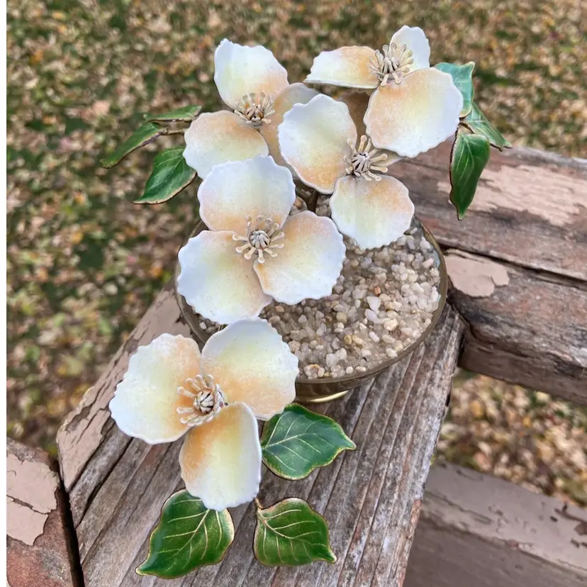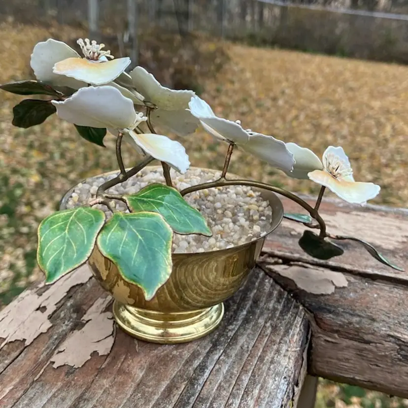 Approx: 6.5” x 5.75” x 4.75”h. Pre-owned condition. No chips on enamel. Some patina on pot. See images as part of description.