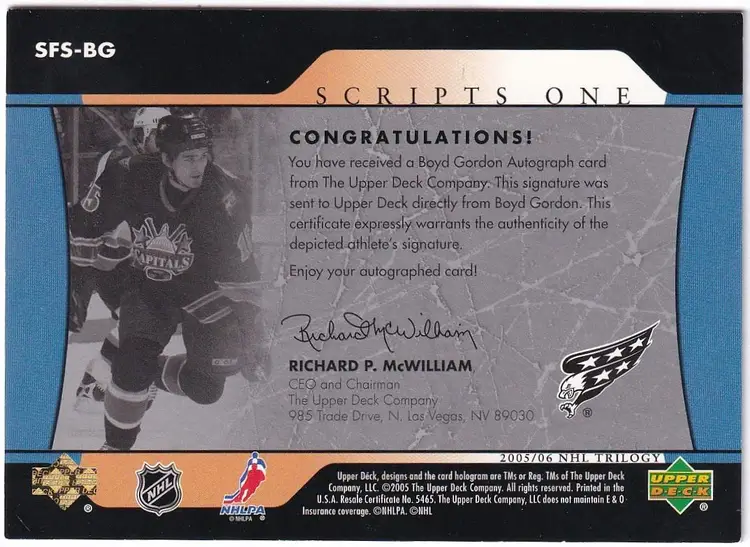 2005-06 Upper Deck Trilogy Scripts #SFSBG Boyd Gordon Washington Capitals