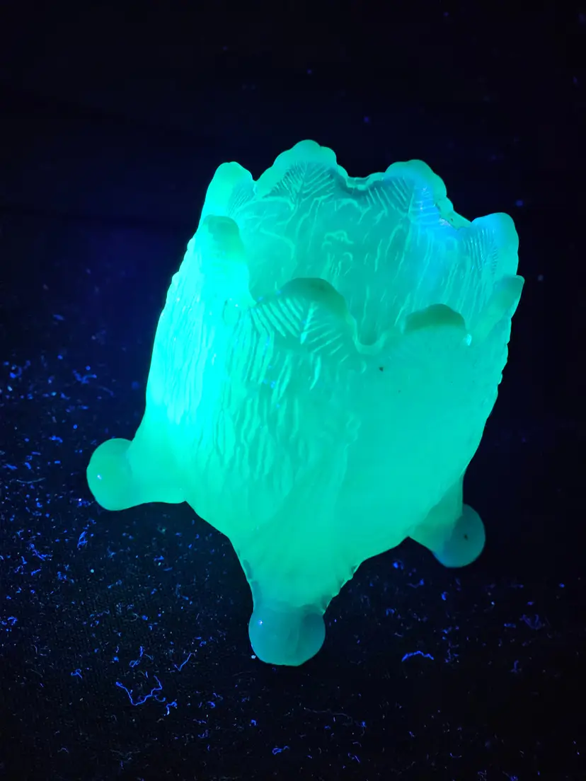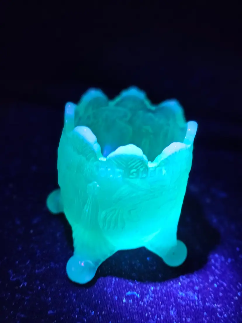 NOTE: My camera washes out pics with UV, so they don't show up as well as they should. This toothpick holder definitely glows.