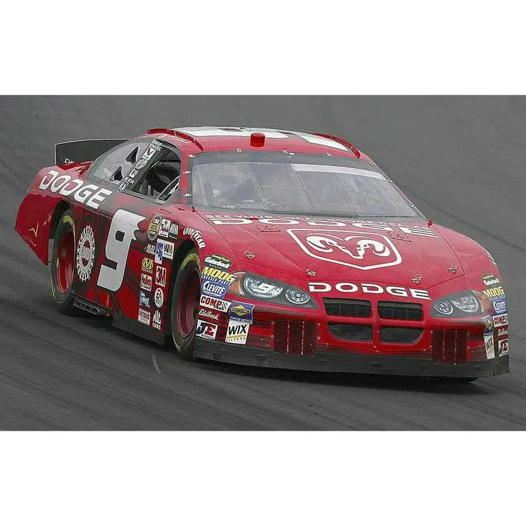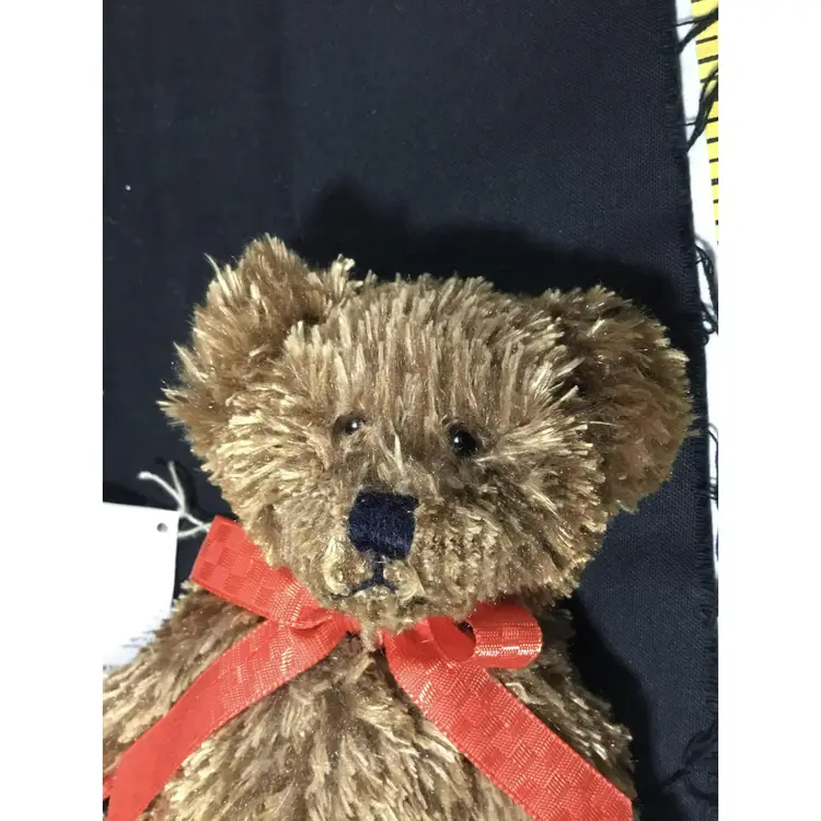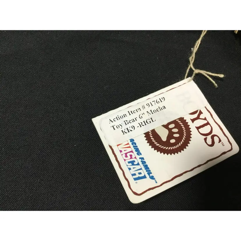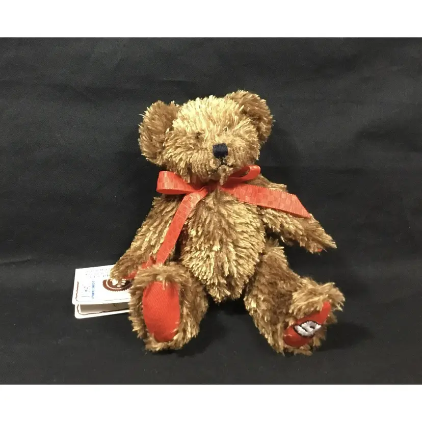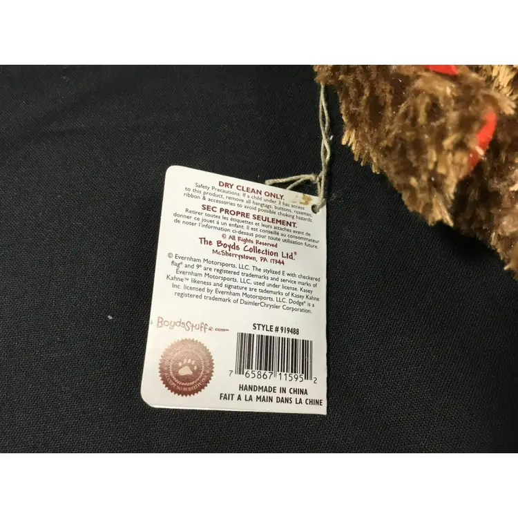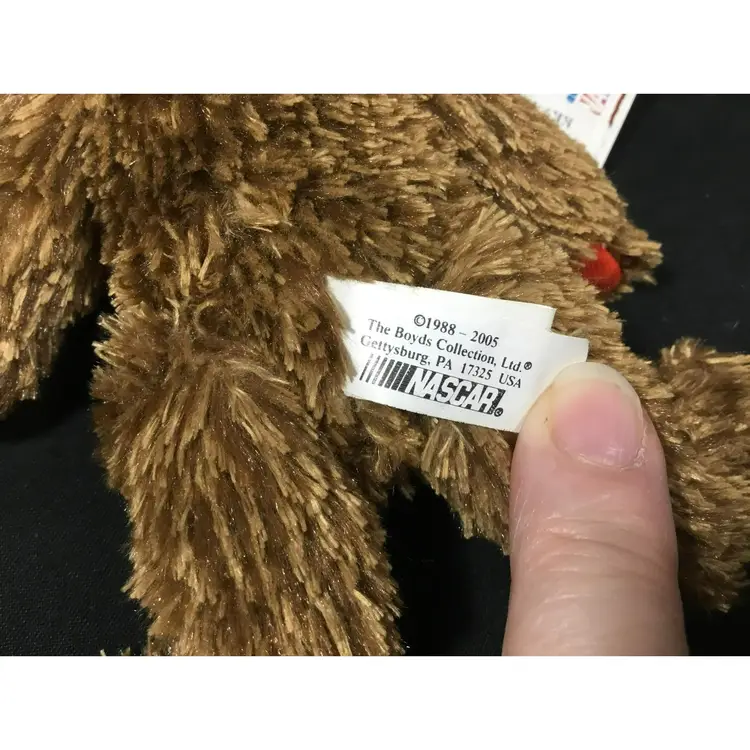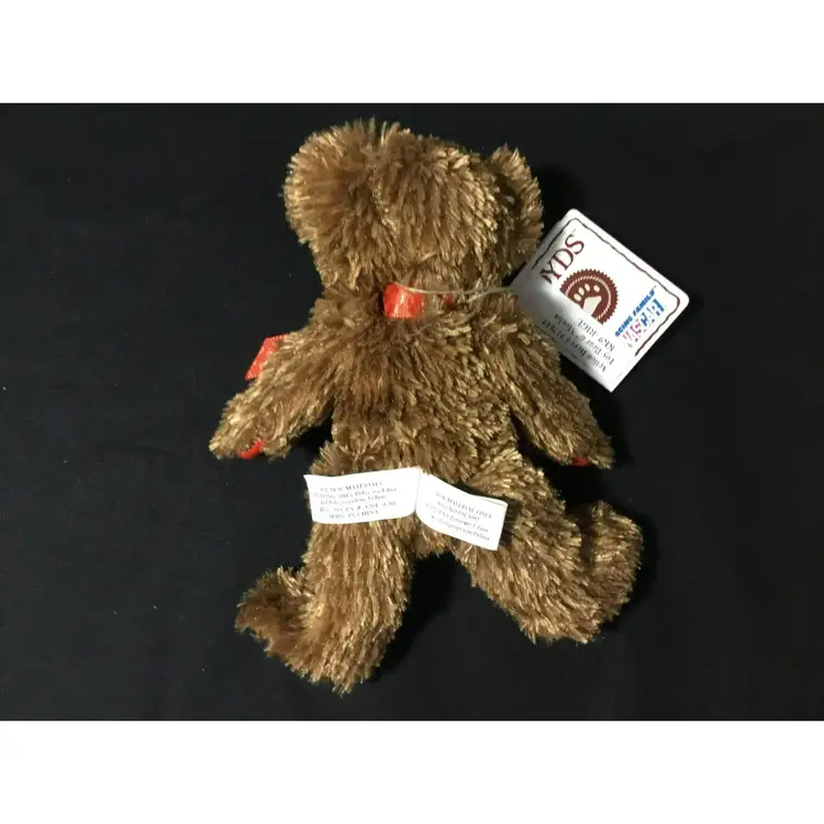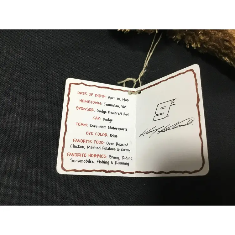6" high, Boyd's bear, brown faux fur with red foot and hand pads, #9 embroidered on foot, black glass eyes, red ribbon around neck vintage Kasey Kahne Dodge #9 bear