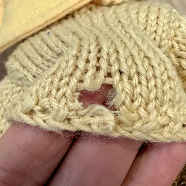 There is a tear on the back of the sweater, see photos). Please view all of the photos for overall condition. I try to describe my items as much as possible and photos are a big part or the description, including measurements not included in description.