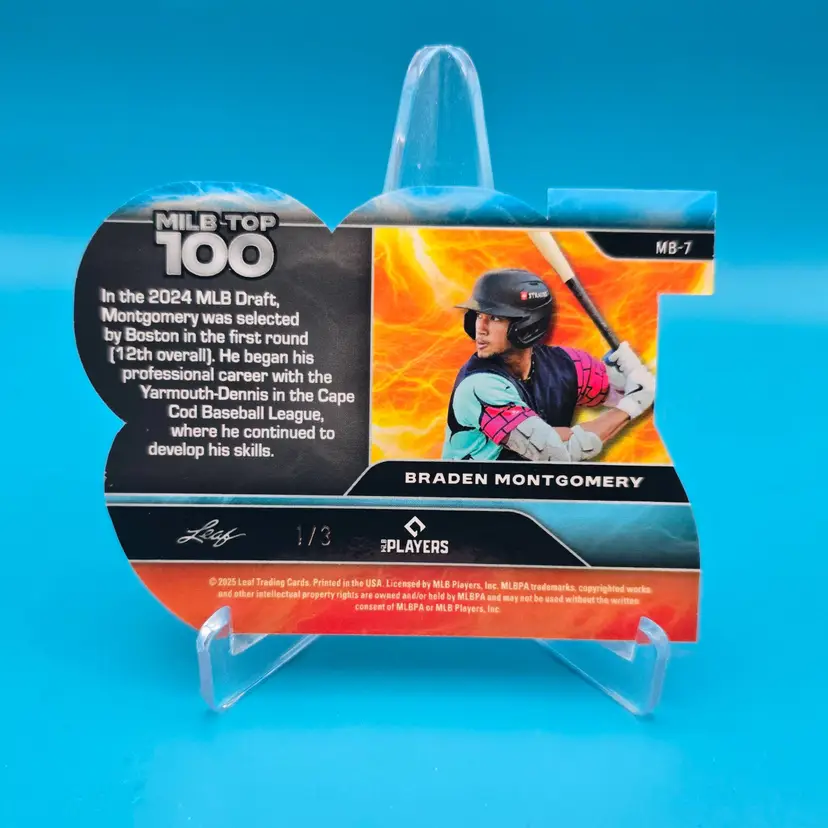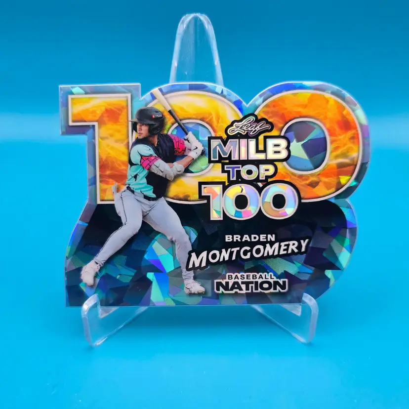 Braden Montgomery 2025 Leaf Baseball Nation die-cut MiLB Top 100 blue prizmatic cracked ice /3. NM or better condition. Shipped PWE via armalope..