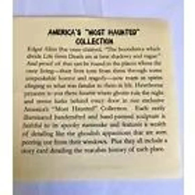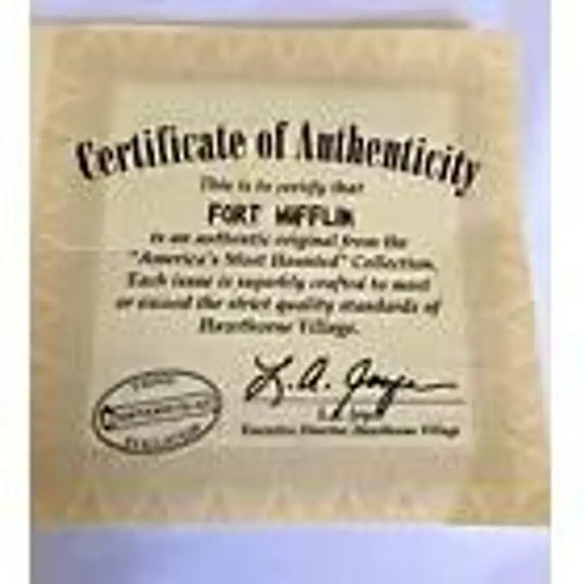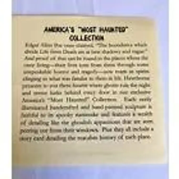 Bradford Exchange Fort Mifflin House America's Most Haunted New COA Story Card. America's Most Haunted Village Collection series. Comes new in the original box with COA and Story Card which explains the house's significance. Light included that can be placed inside and illuminates the house. I have only opened the box to photograph. These have never been displayed.