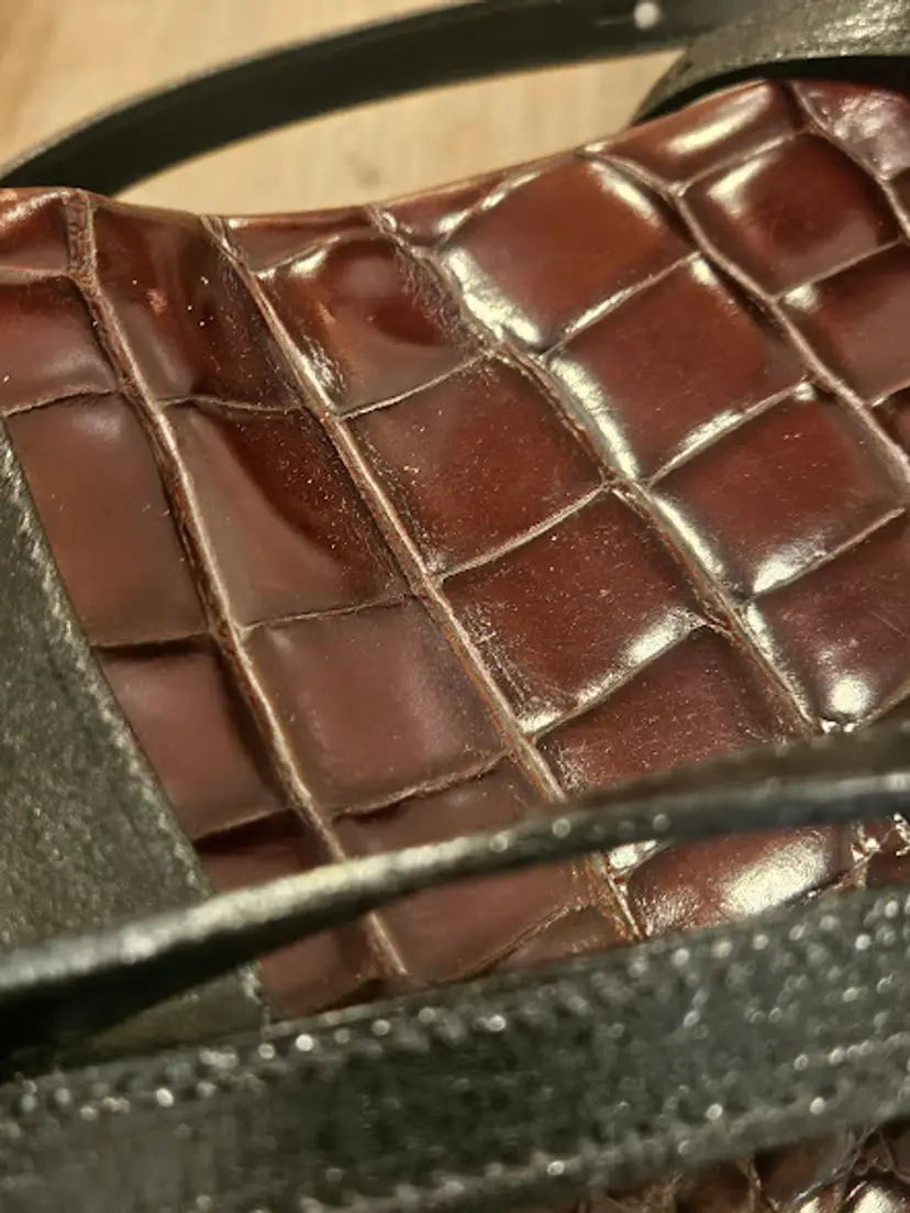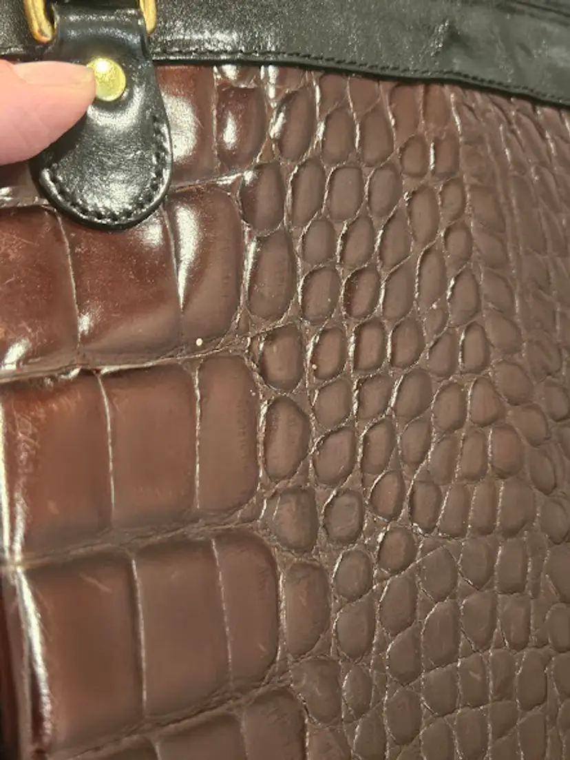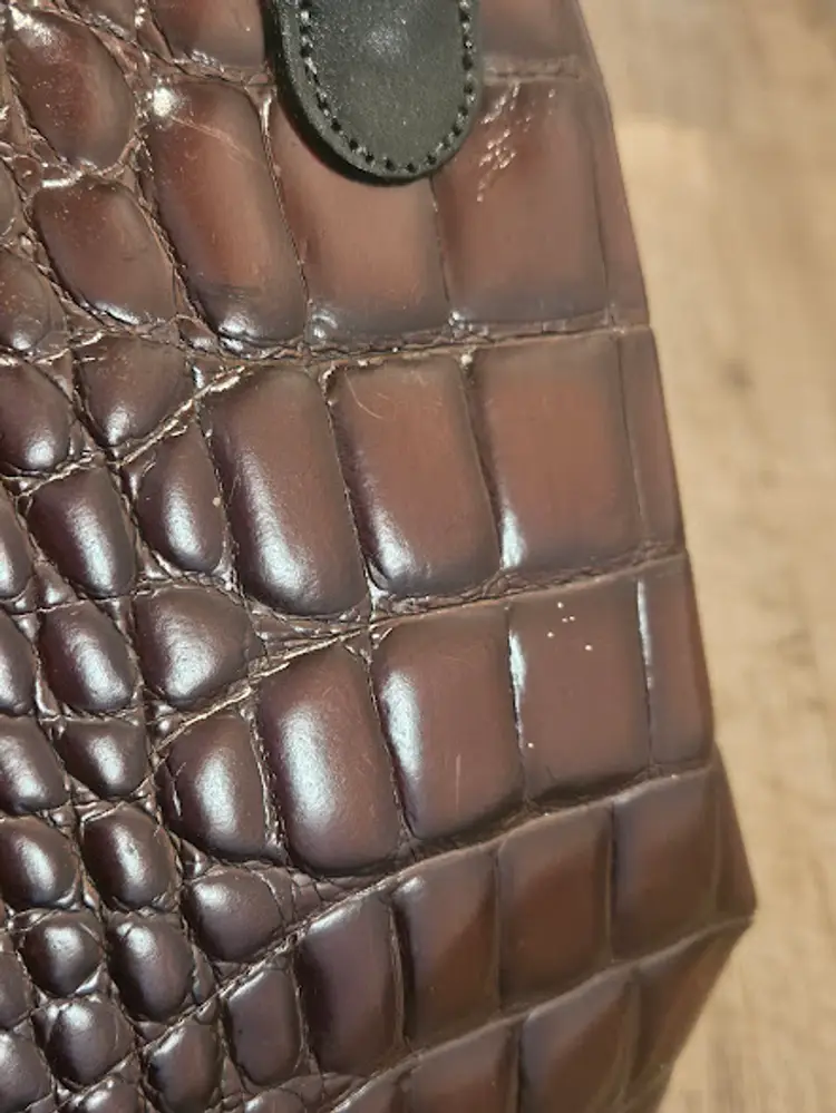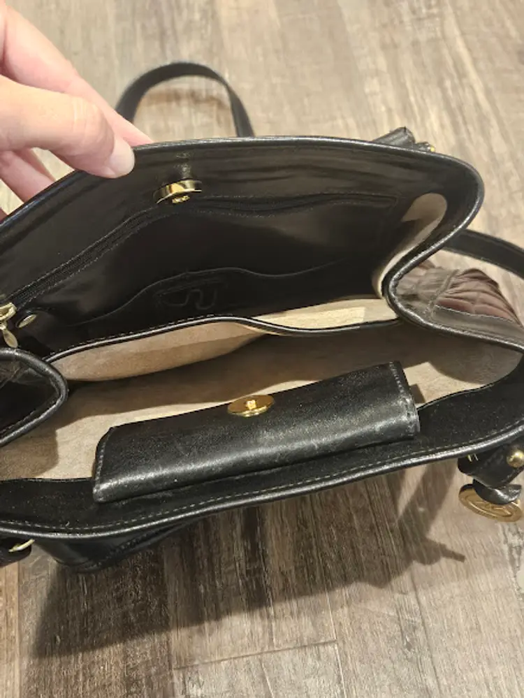 snap closure some overall light surface wear, see photos, mostly to the bottom some warping of the bag, shown clearly in photos