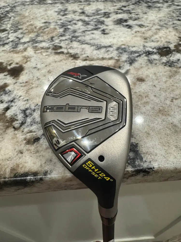 Brand new out of the plastic Cobra Air X 5 Hybrid. This thing is super sweet. Never been hit! ULTRALIGHT 50R (Regular flex) shaft. Comes with Head Cover!