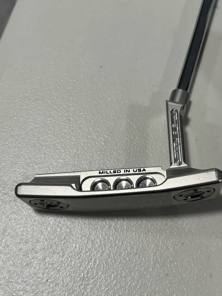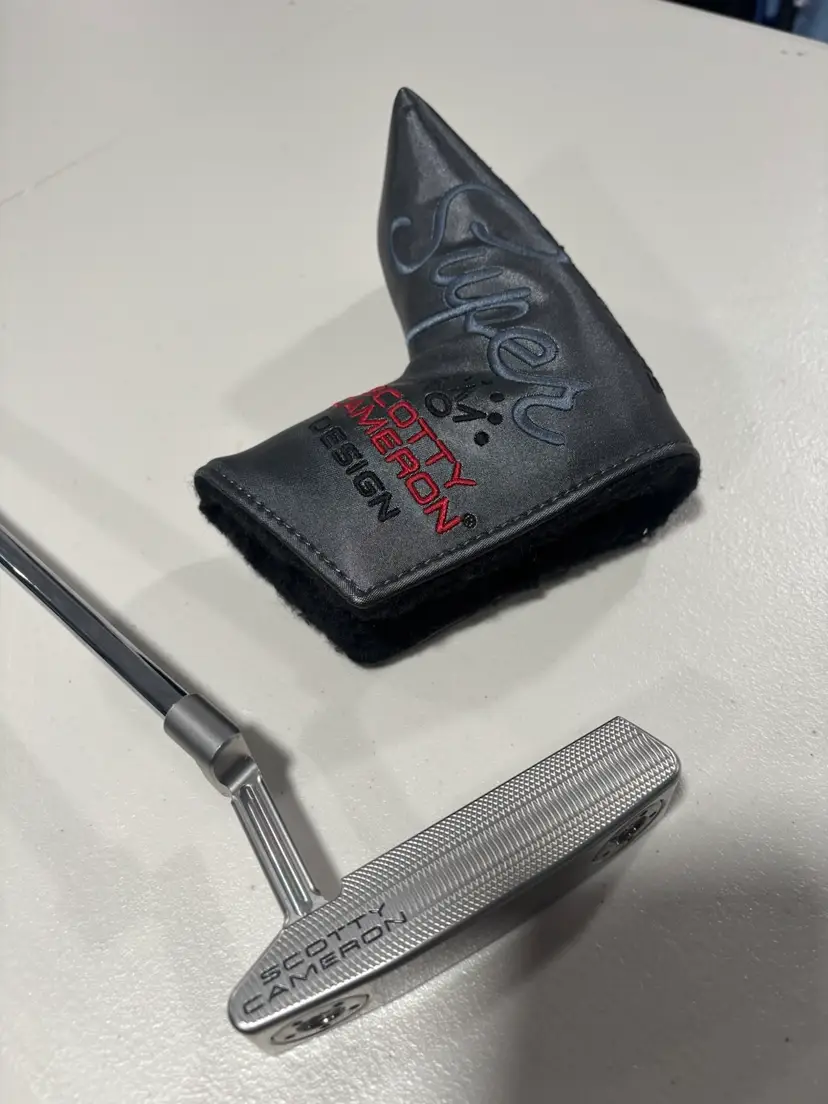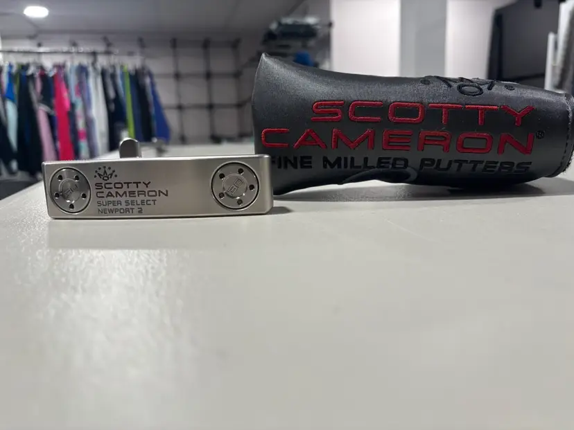 Left handed golf putter, brand new in wrapper, comes with head cover. Putter is 35 inches.