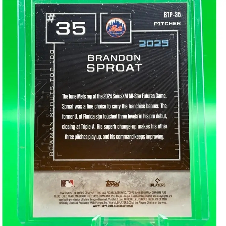 Brandon Sproat 2025 Bowman Scouts Top 100 Red Refractor /5 New York Mets