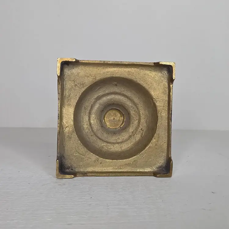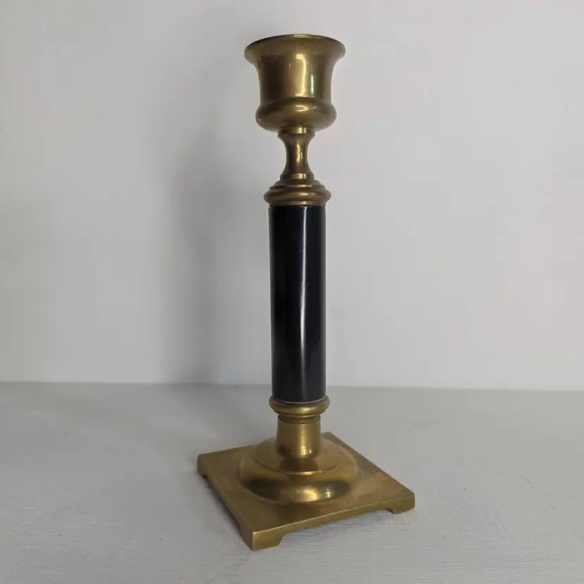 Heavy solid brass & black enamel candlestick holders with a square base.