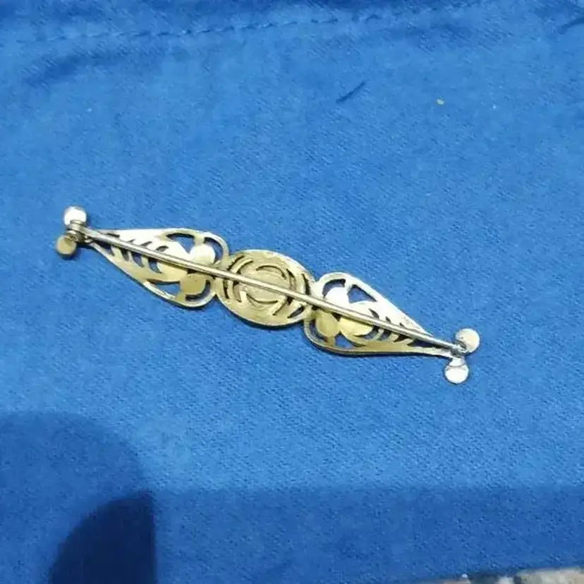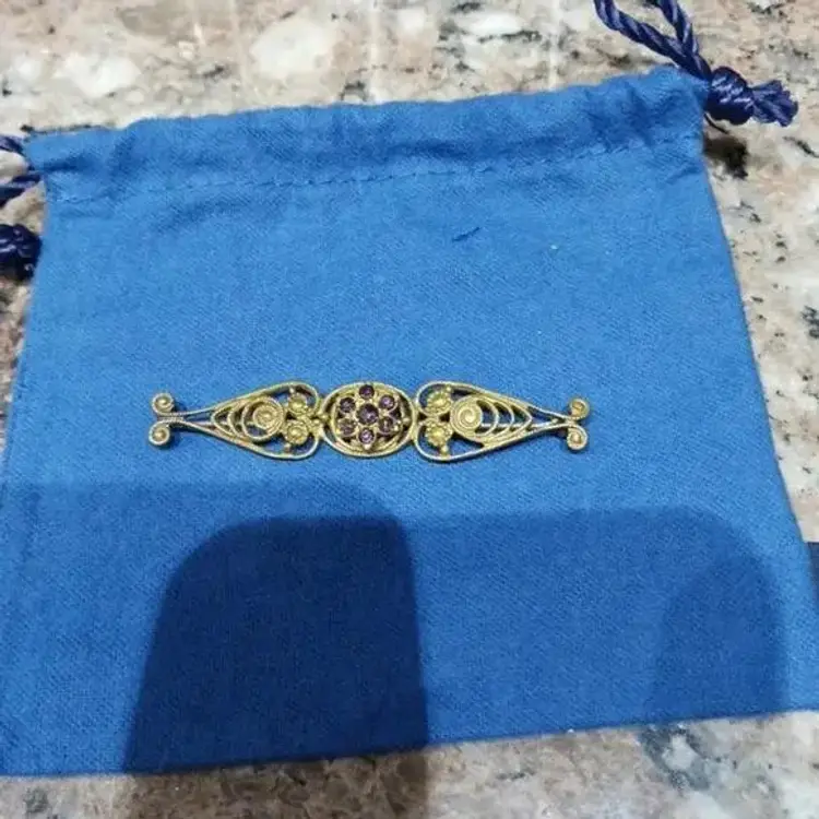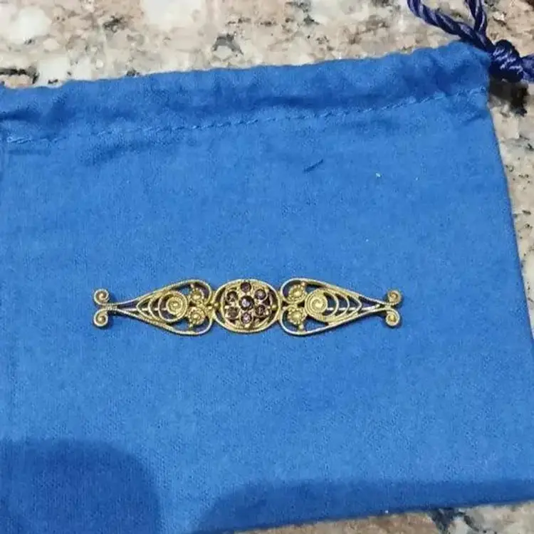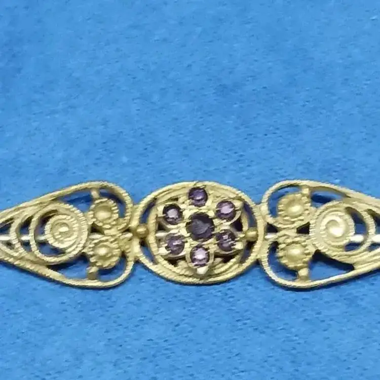 Brass and Glass Early Bar Pin With Purple Crystals Circa 1910