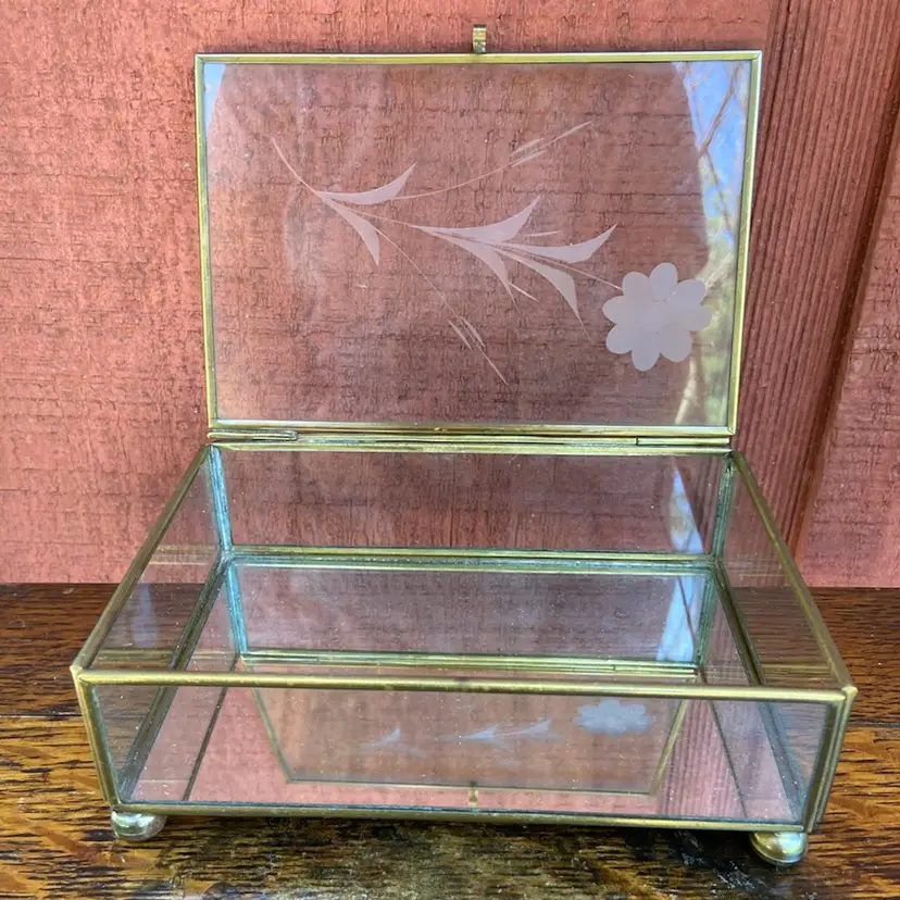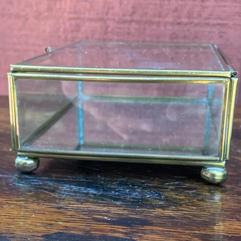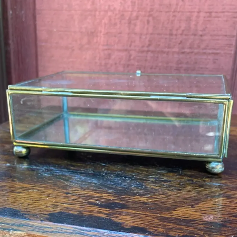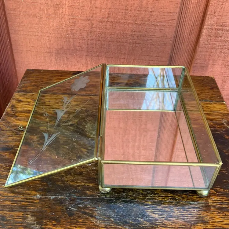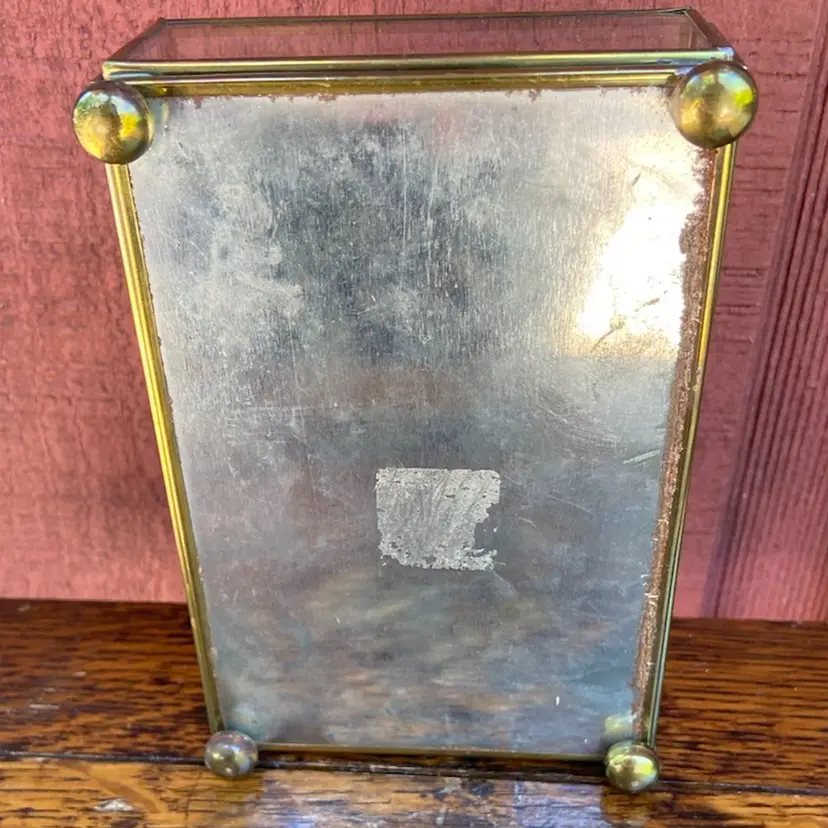 Approx 6.25”d x 4.25”w x 2.25”h. Preowned condition. No chips or cracks. Clasp is tight. Needs a good clean. Back panel has some aging / decay to the metal (last image). Sticker residue on back. See images as part of description.