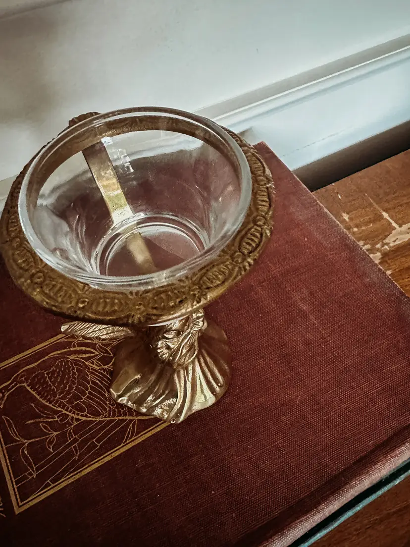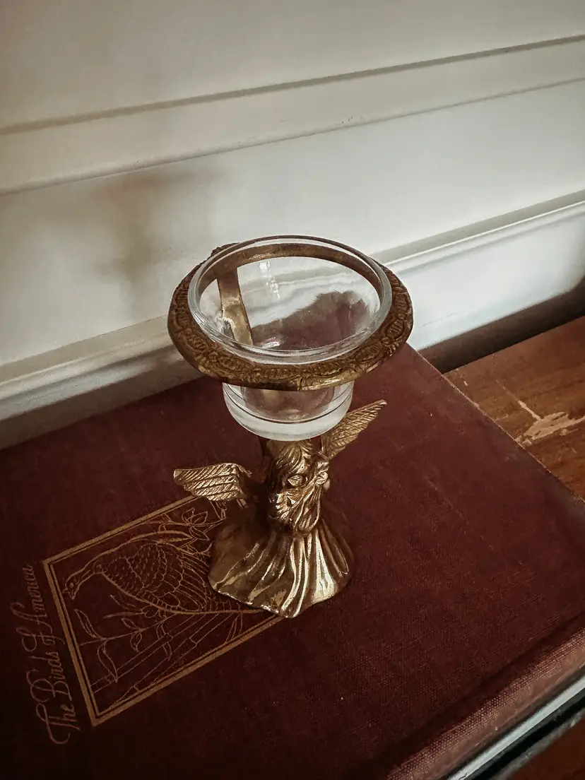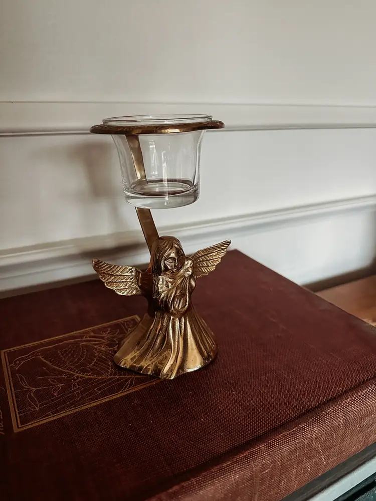 Very sweet votive holder with vintage patina.