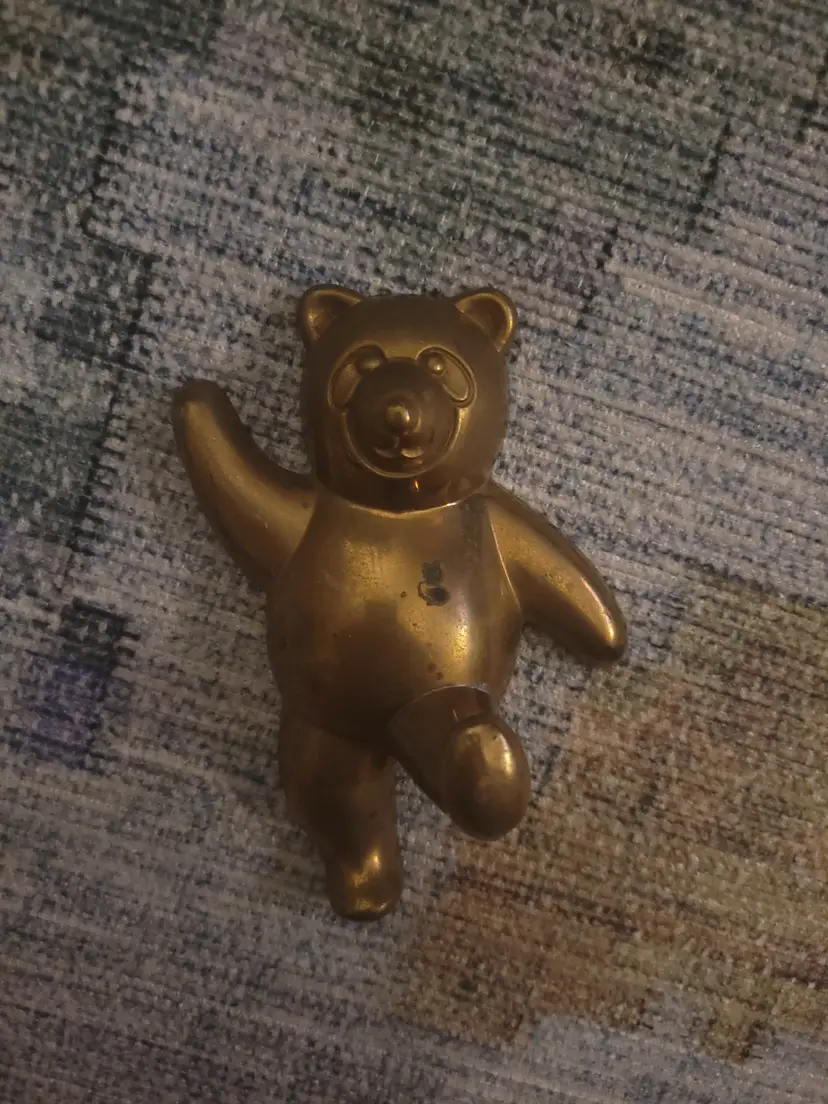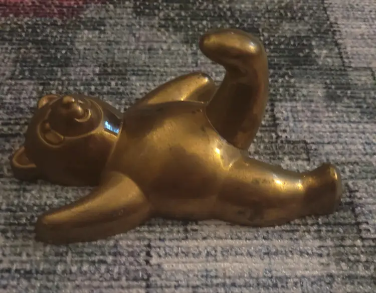 Sweet little bear shaped brass wall hook. Leg kicked out to hand items from.