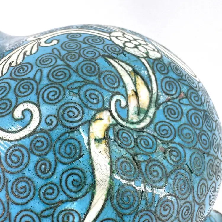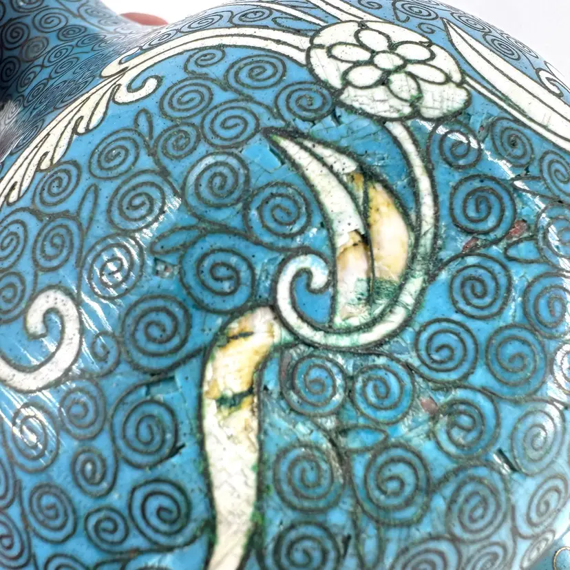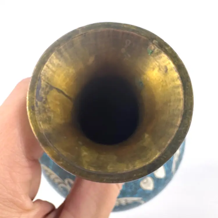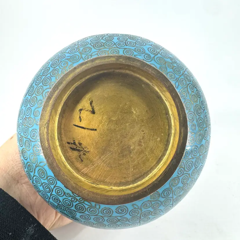 Height is approximately 6.5” Does have a dent and chipping can be seen in the photos. Is not marked or signed