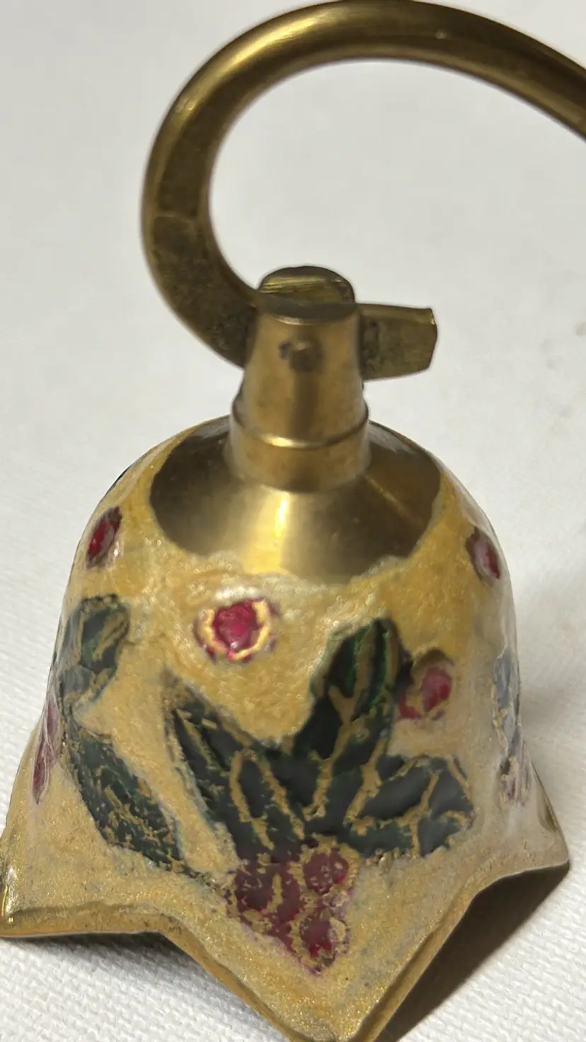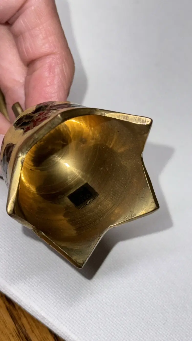 Brass candle snuffer with enamel paint vintage About7.5” long the enameled snuffer is about 2” tall Made in India Excellent condition (5924243)