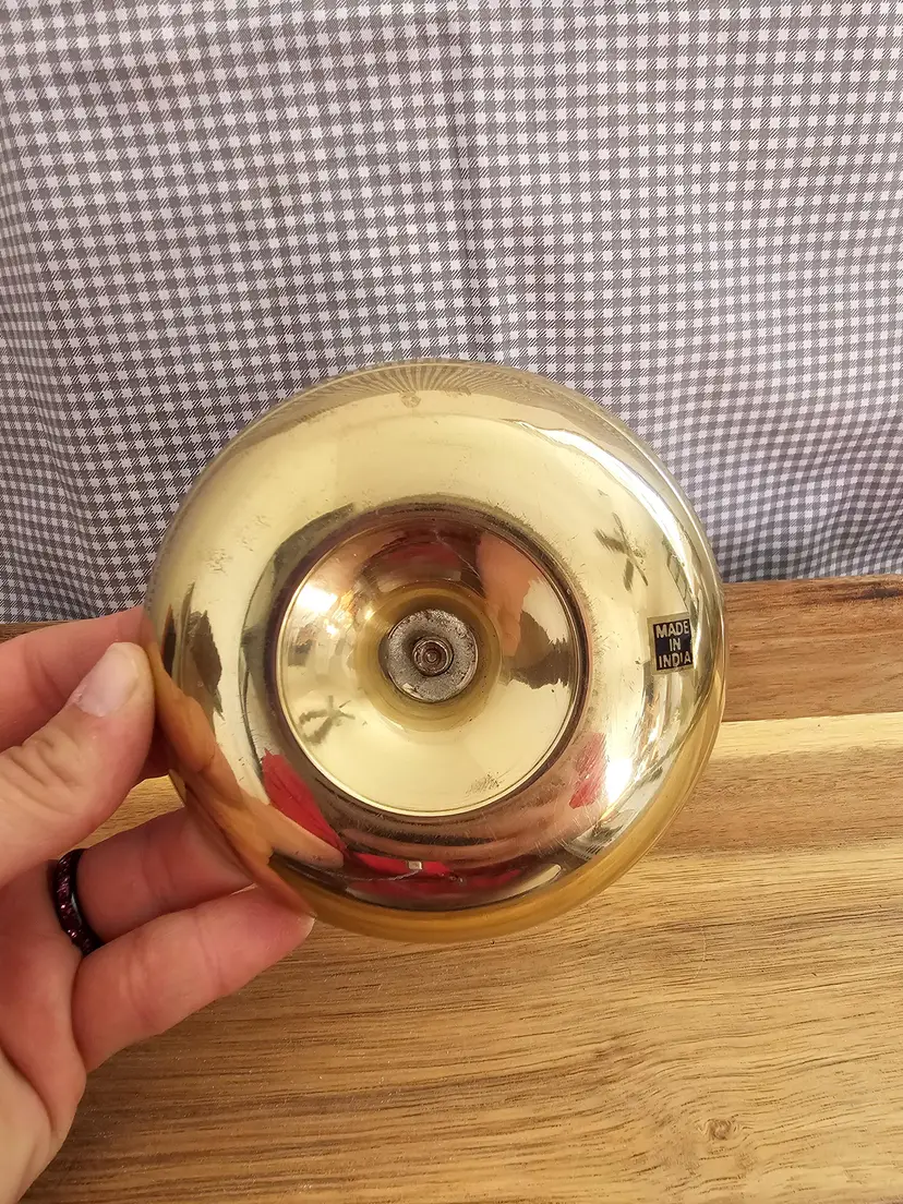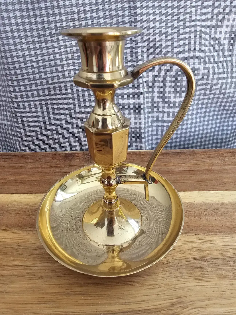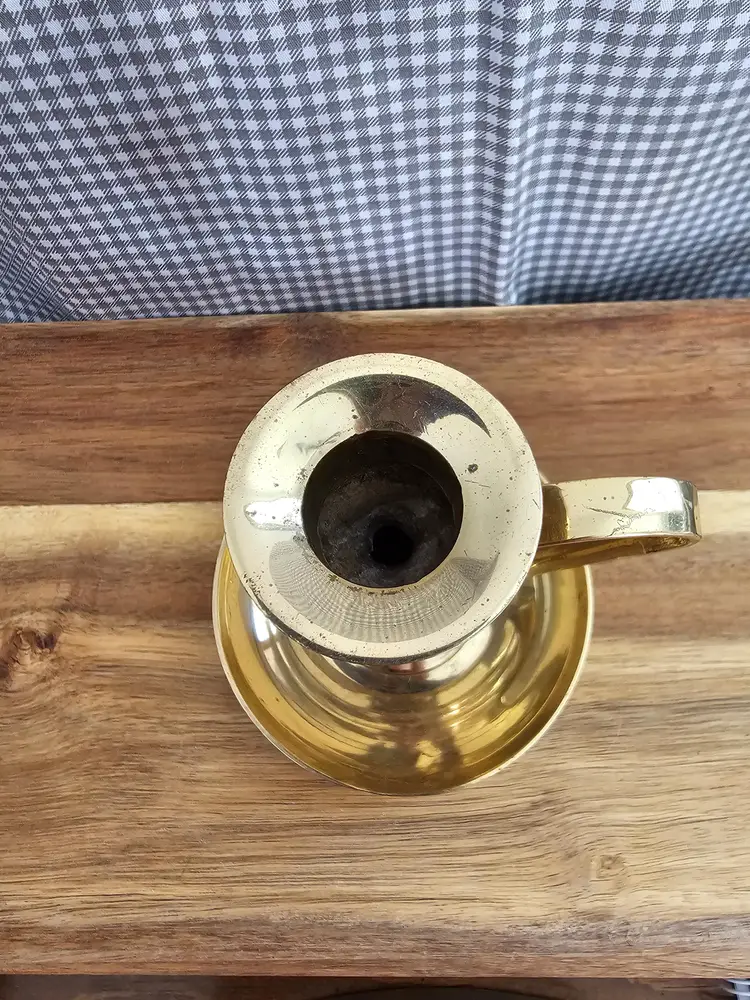 Brass candlestick with a rich golden hue. Made in India, this piece adds a touch of classic charm to any decor. No visible damage.