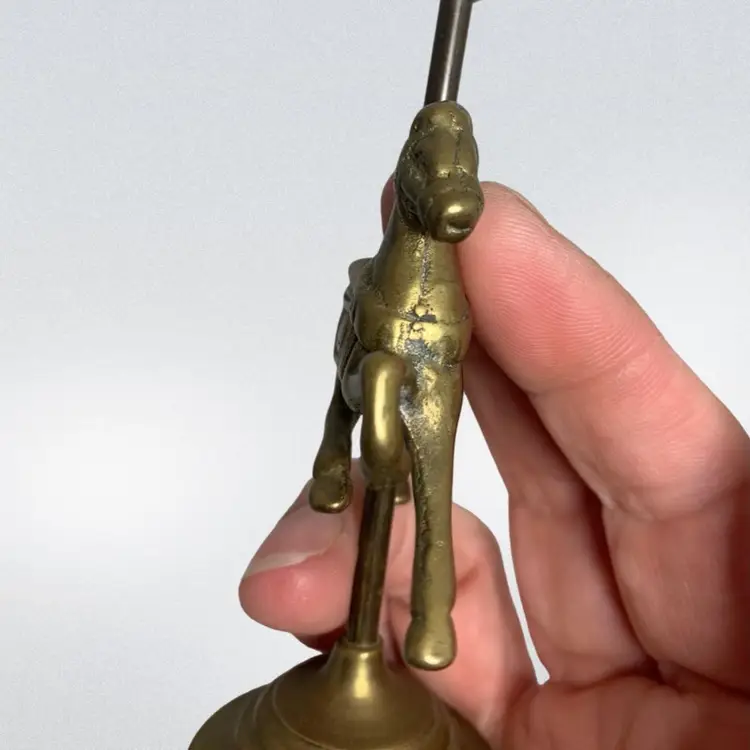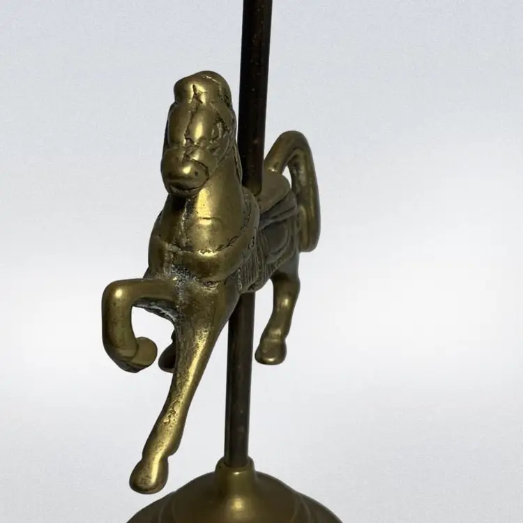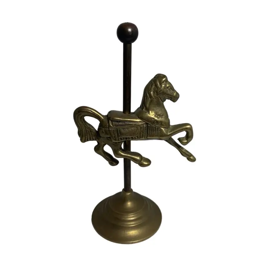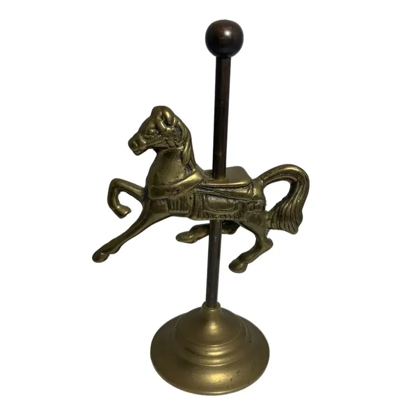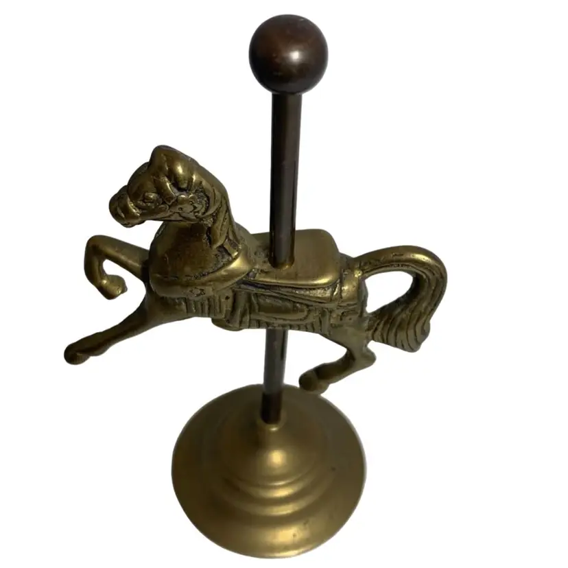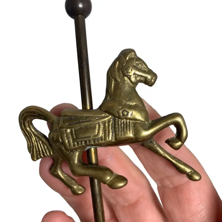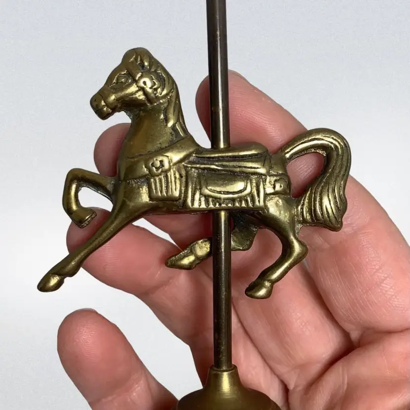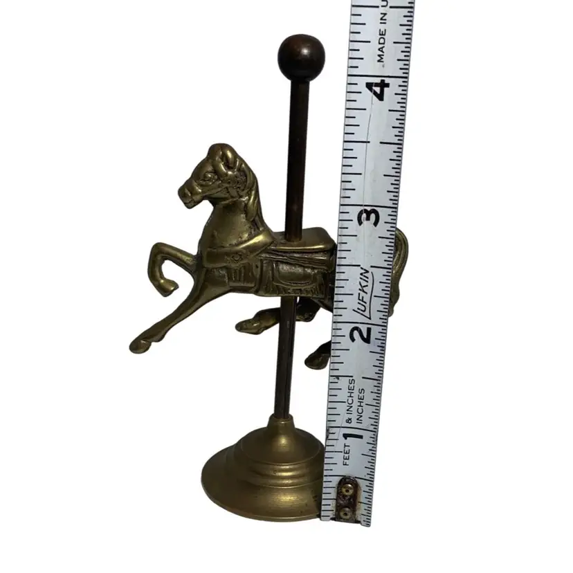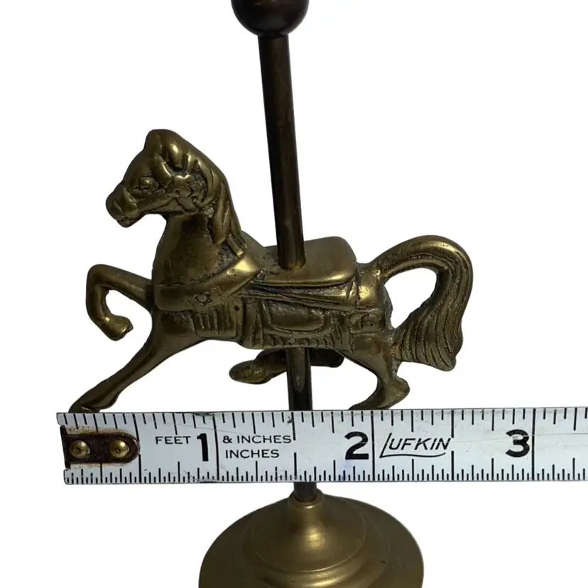 In good condition. It does have some tarnish, especially on the post holding the horse. See all photos for condition details and measurements. Thanks for checking out my listings.