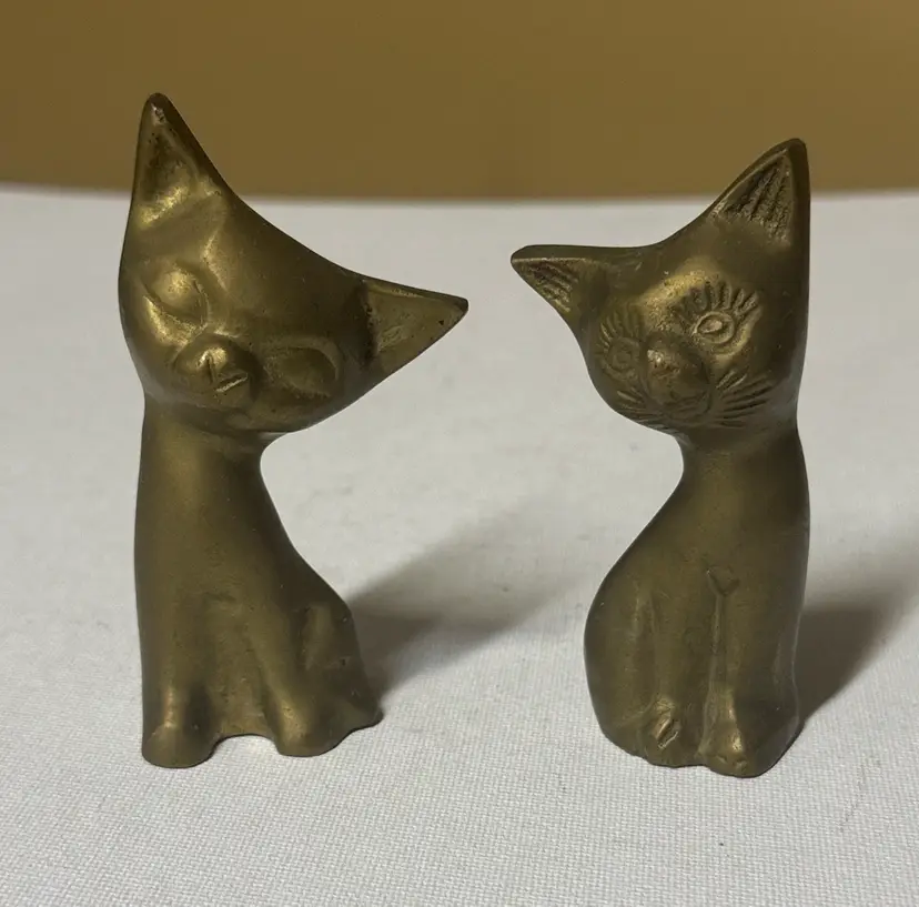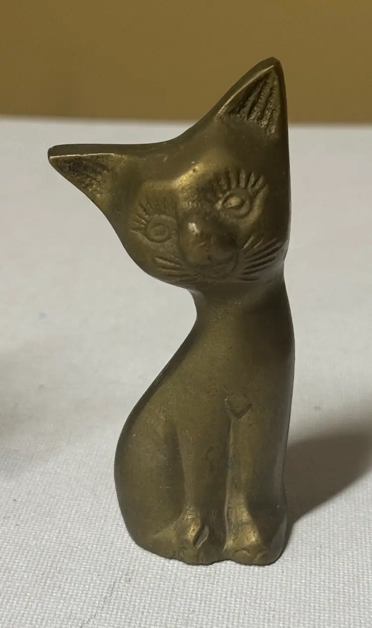 Charming brass cat figurines perfect for any cat lover's collection. These beautifully crafted pieces add a touch of elegance to your home decor. Brass Cat Set Figures Vintage Sitting Kitty Trinket 3 3/4” and 3 1/2”Cute MCM Excellent condition (13271121251)