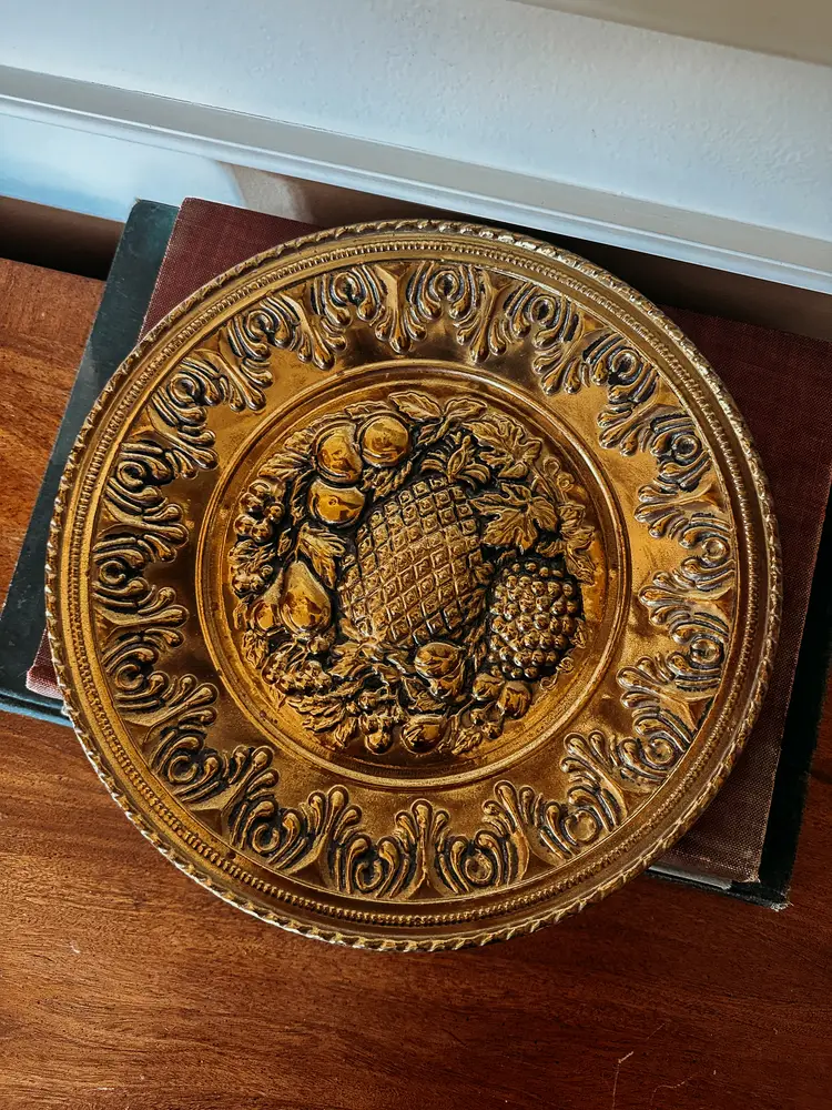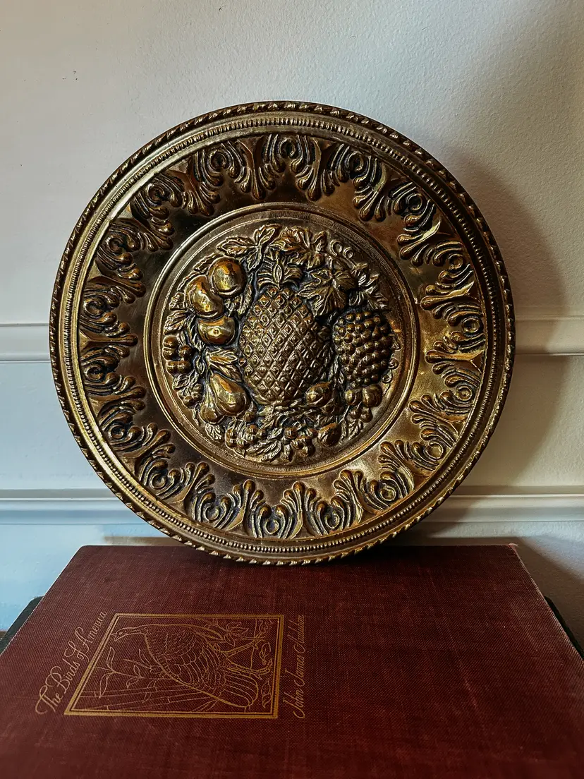 Vintage Decorative Brass Wall Plate with Fruits 12" made in England