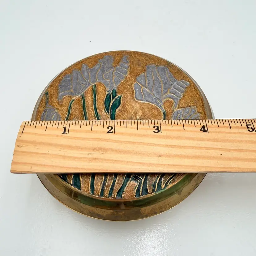 As shown 2 inches tall by 4 inches wide Some scratches and discoloration to the exterior sides