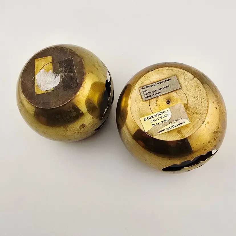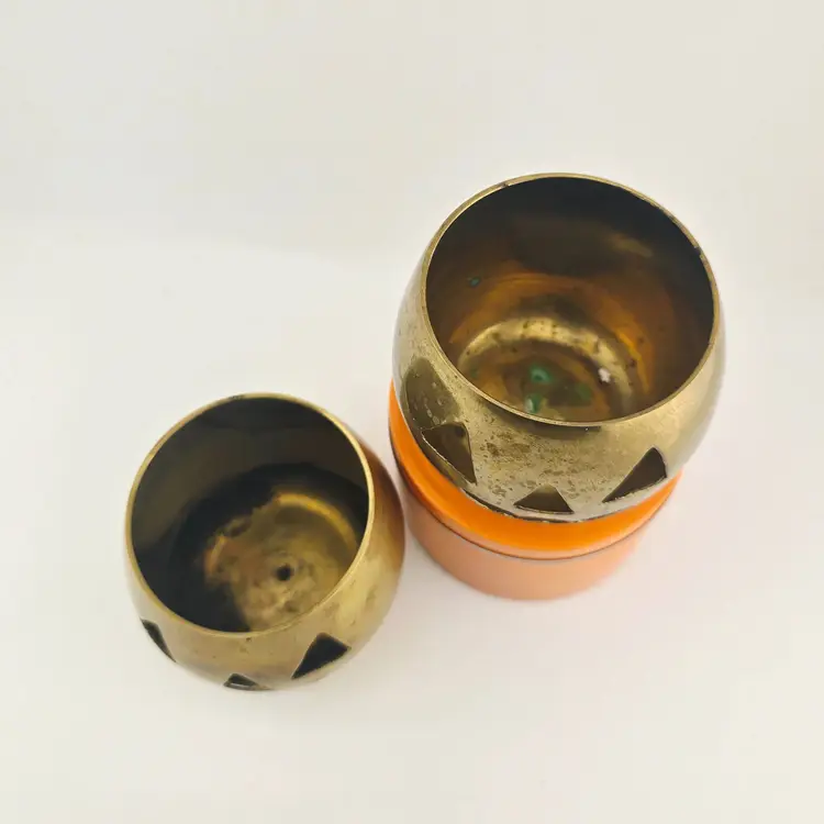 Both have Patina and age use. 2.5 inches tall. 2 inch opening.