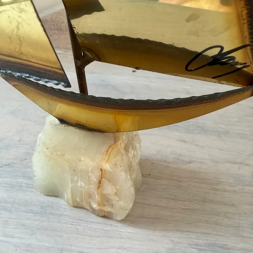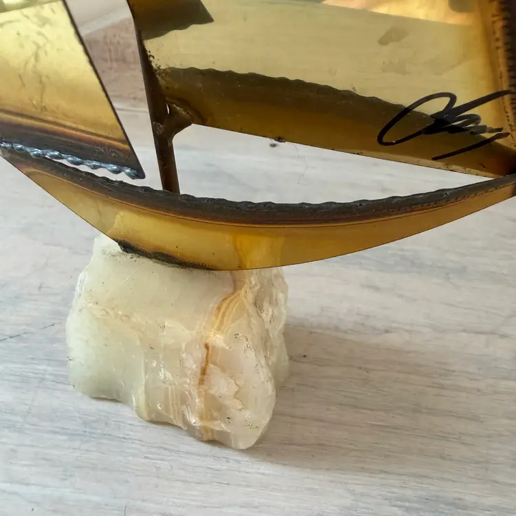 9.5” Brass sails with unique quartz/ onyx base