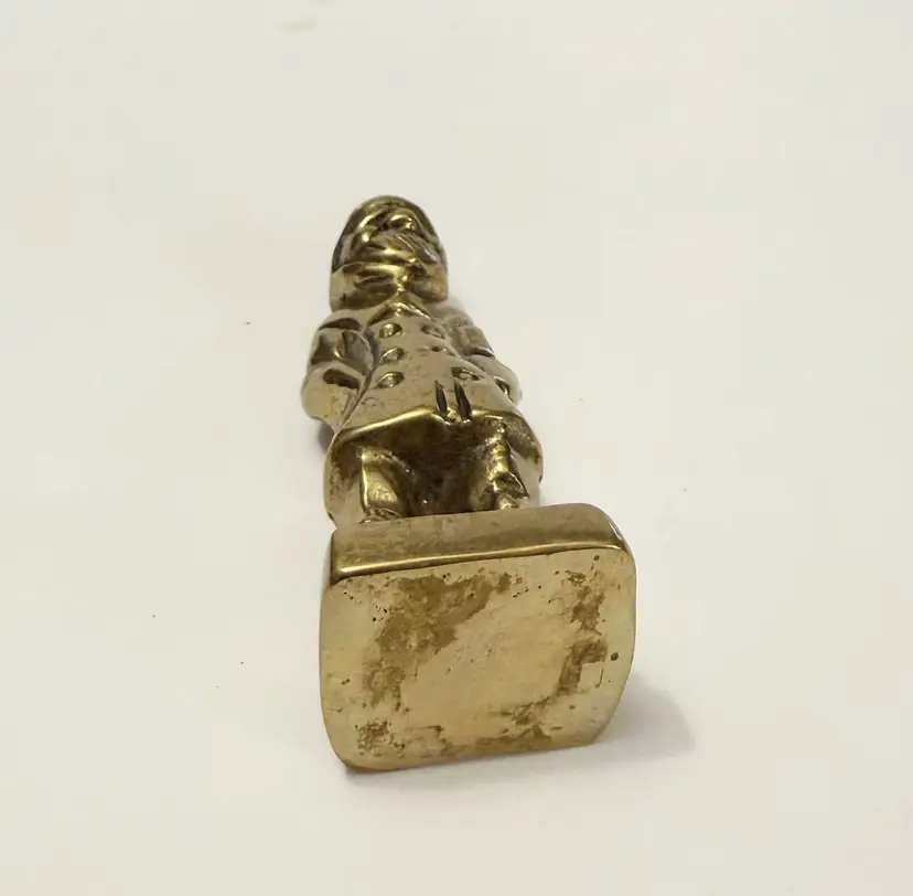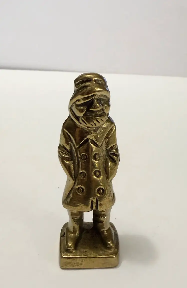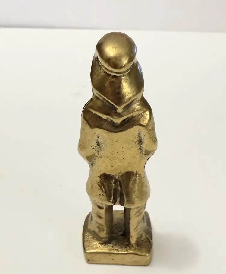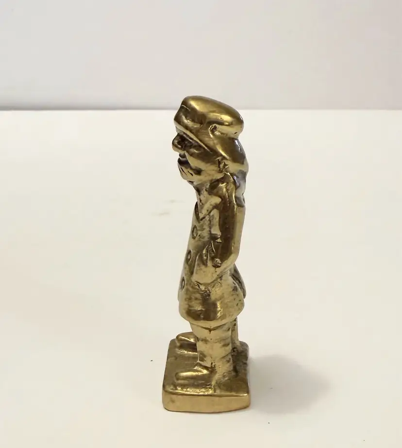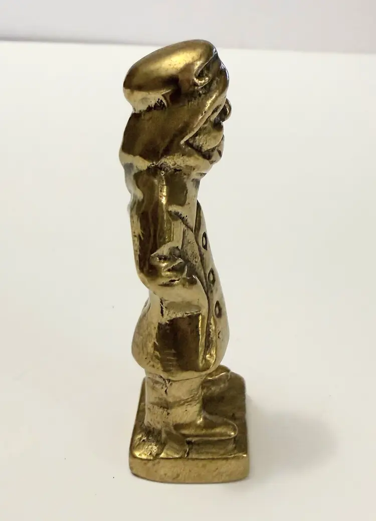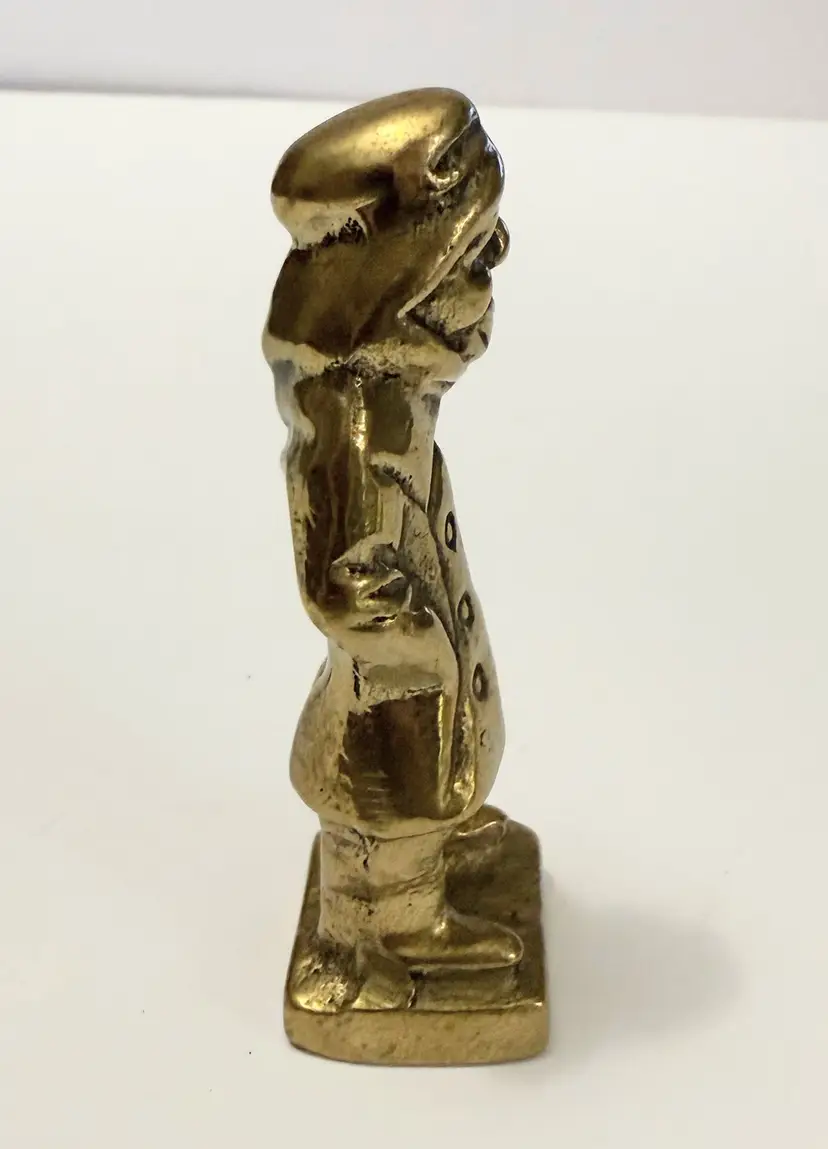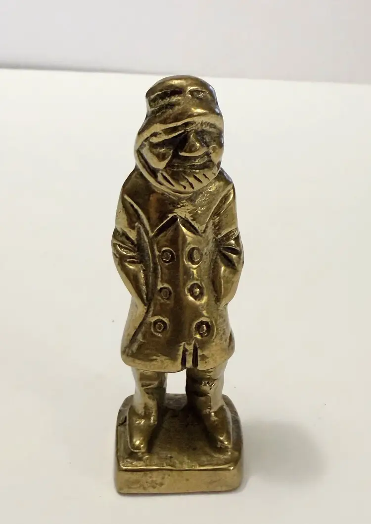 This vintage solid brass sea captain figurine is a handmade nautical fisherman figure. Crafted with attention to detail, this unique statue captures the essence of a seafaring captain with a touch of age-old charm. The brass material adds a touch of elegance and durability, making it a timeless collectible for any nautical enthusiast or metalware collector.