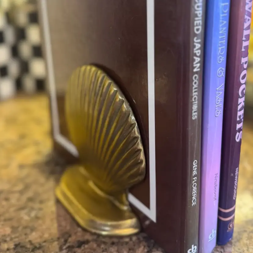 Beautiful brass seashell bookends set. Awesome condition. Could be polished or left as is. Measure six and three-quarter inches tall by 5 inches at its widest.