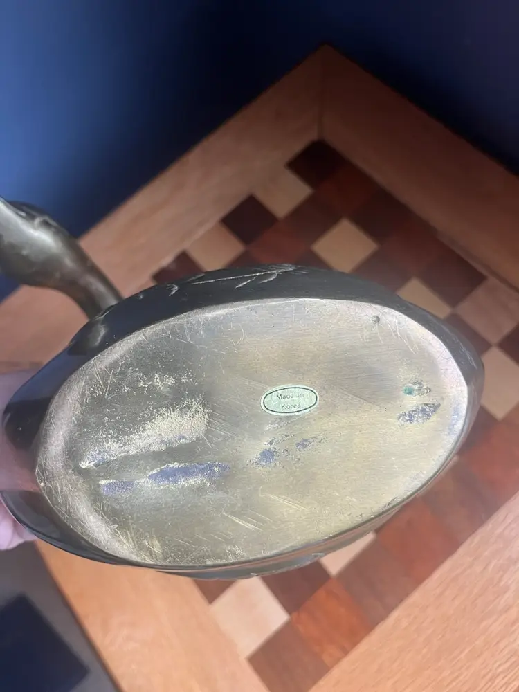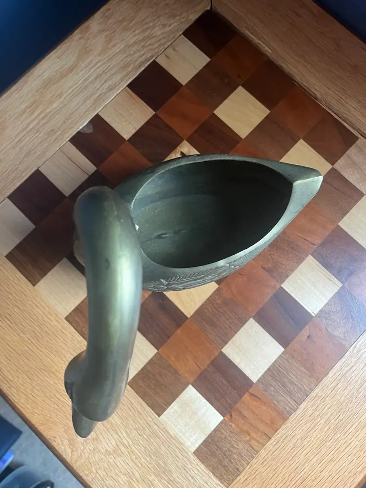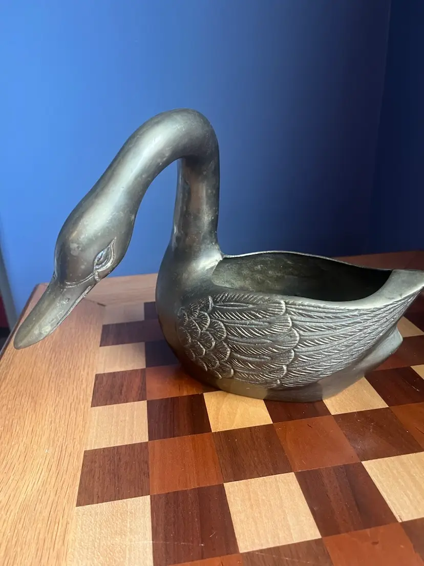 Brass Swan planter made in Korea sticker on bottom. 8.5” tall