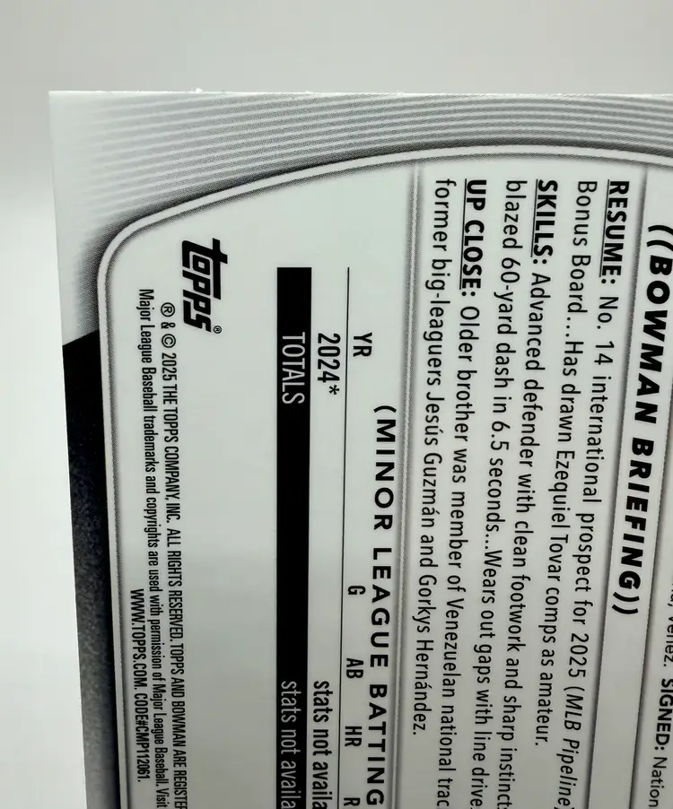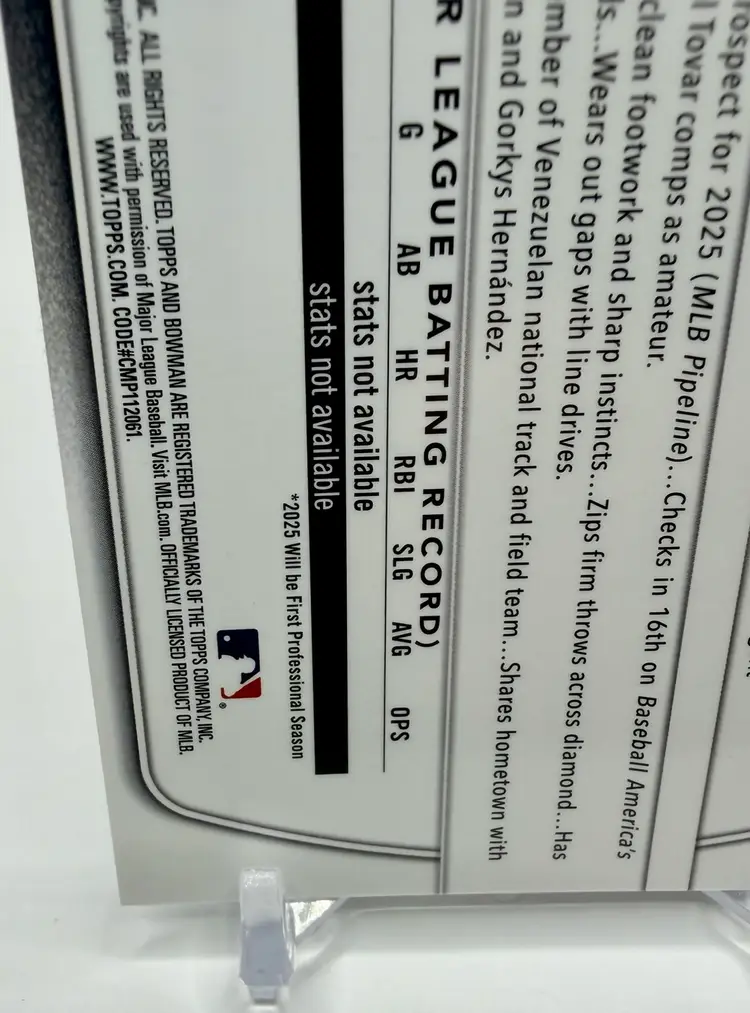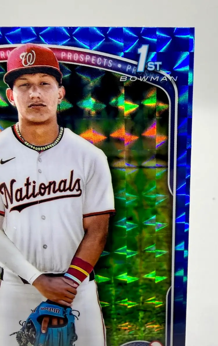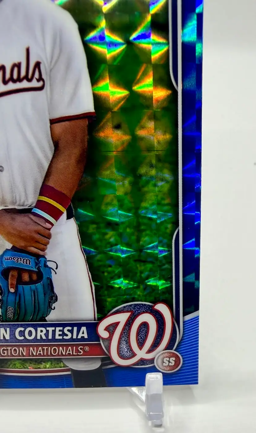 2025 Bowman Chrome 1st Blue Geometric Nationals trading card featuring Brayan Cortesia of the Washington Nationals. Please review the photos carefully to assess the condition of the cards. We do our best to provide clear, detailed images, especially for cards with noticeable flaws. Please note that some raw cards may show light wear, so we encourage close inspection. Cards will be shipped securely Thank you for checking out our store and for your support!SKU: 844