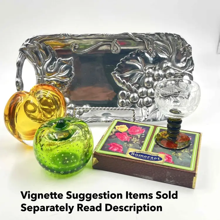 👉10.5x5.25x 1” Embossed Grapes Aluminum Alloy 👉Tray Only Vignette Items Sold Separately 👉Review Photos for Best Condition Description 👉Sold as Shown
