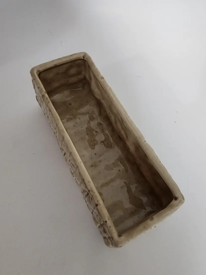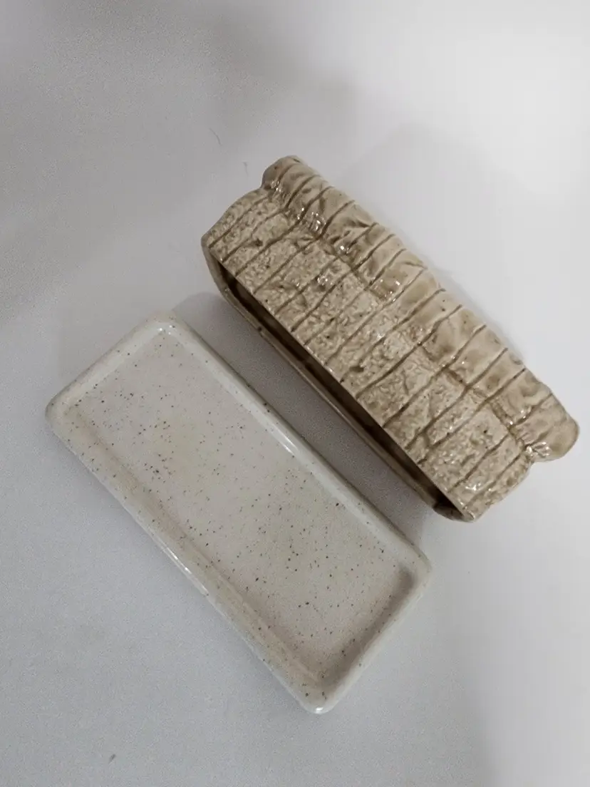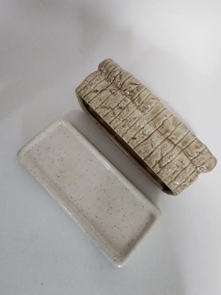 This ceramic bread shaped butter dish is in good condition with no noted chips, cracks or stains.