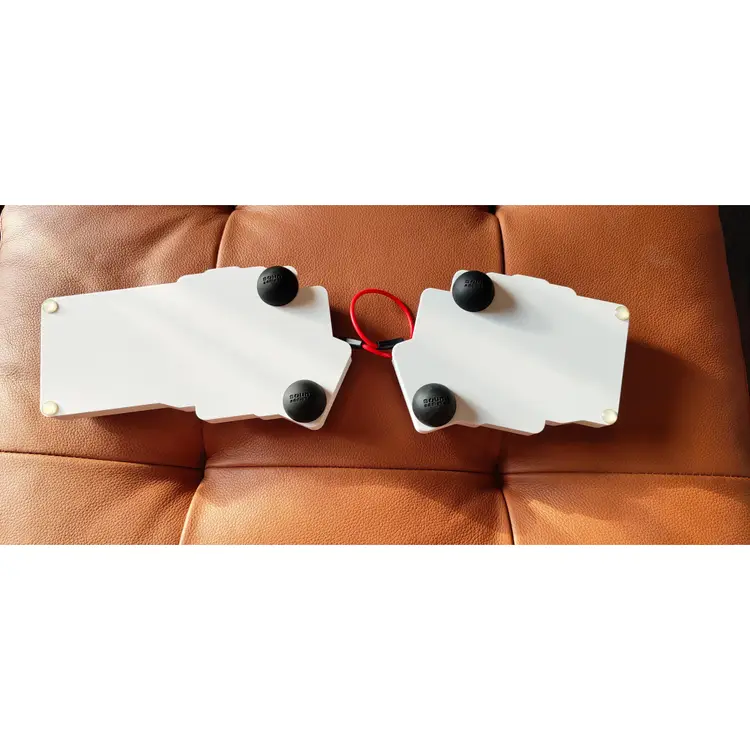 3D Printed white case, FR4 plate, Elite-C controllers, Rubber tenting feet Kailh Blueberry Switches [Lubed, tactile] MT3 Black-on-White keycaps