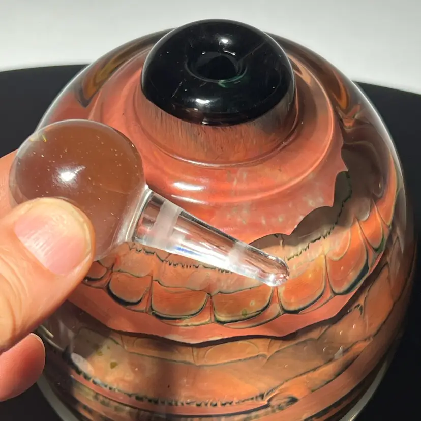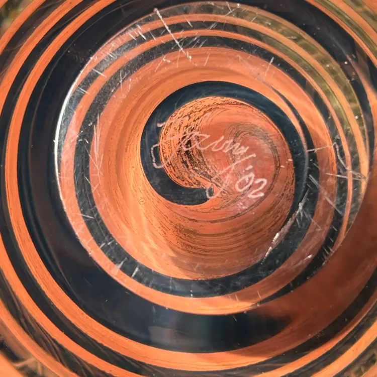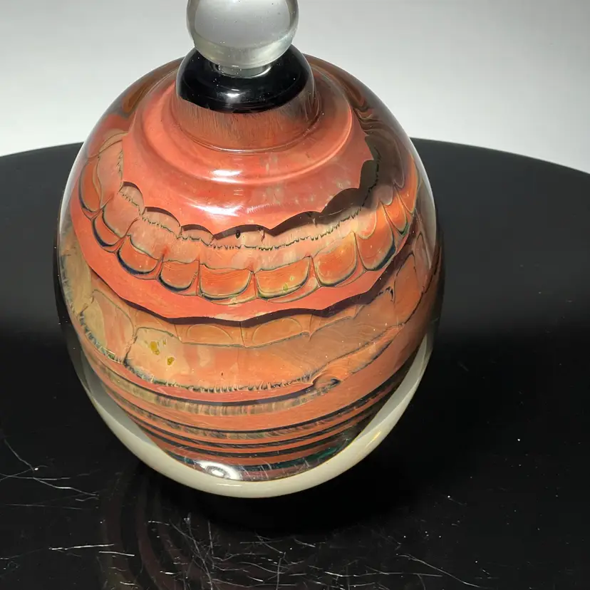A beautiful 8” Fossil Series bottle with stopper in excellent condition and signed on bottom. A beautiful statement piece.