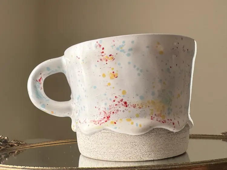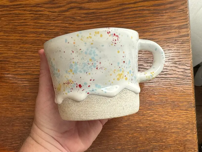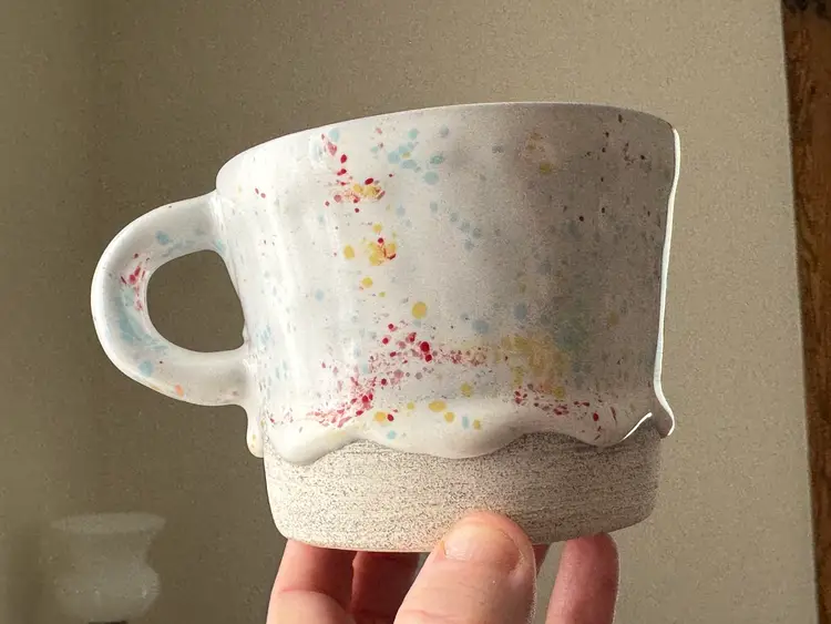 Brian Giniewski Drippy Pots ceramic mug, in a confetti or splatter glaze
