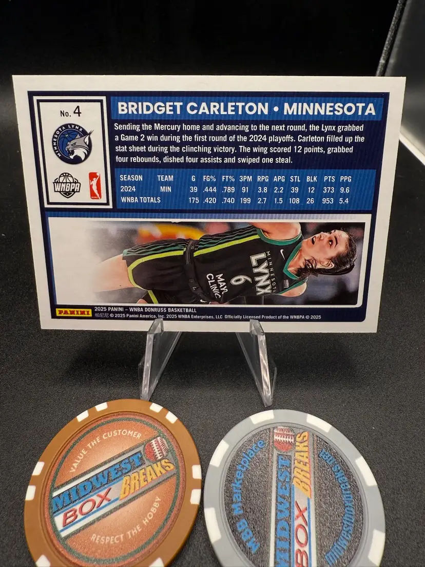 This is a parallel of Bridget Carleton of the Minnesota Lynx. It is #202/399. This is from 2025 WNBA DonRuss.