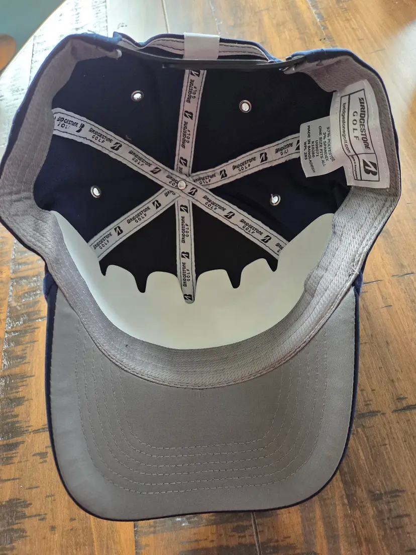 This listing is for a brand new Bridgestone Golf rope cap. It is navy in color and has an adjustable snapback.
