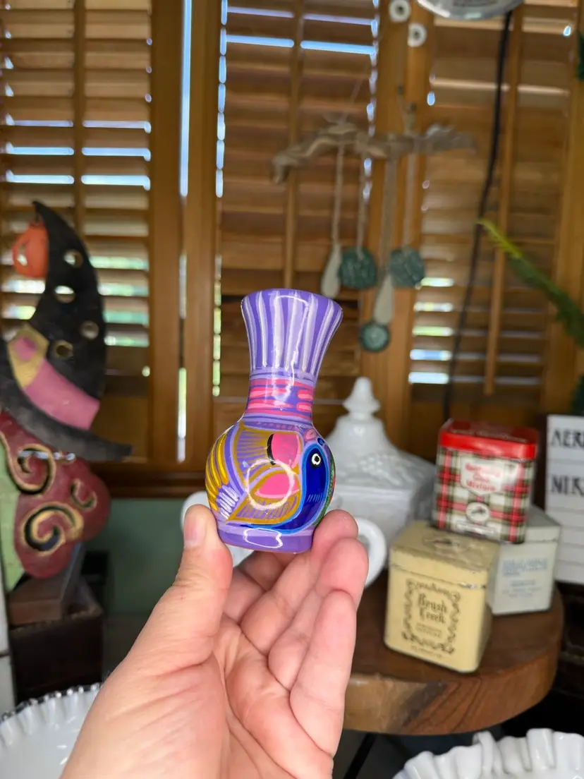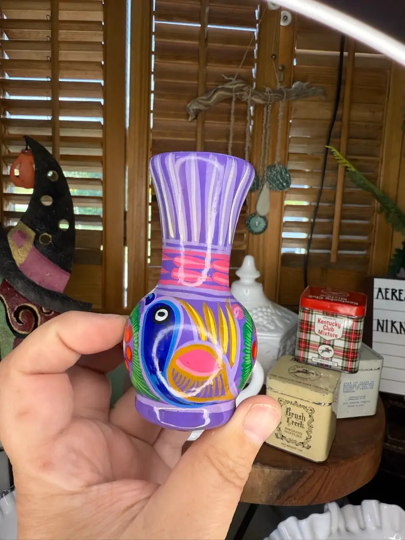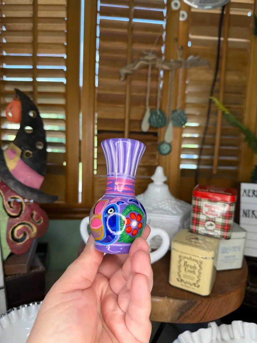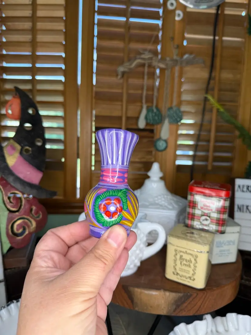 3.5” x2” earthenware painted vase Un marked No chips or cracks