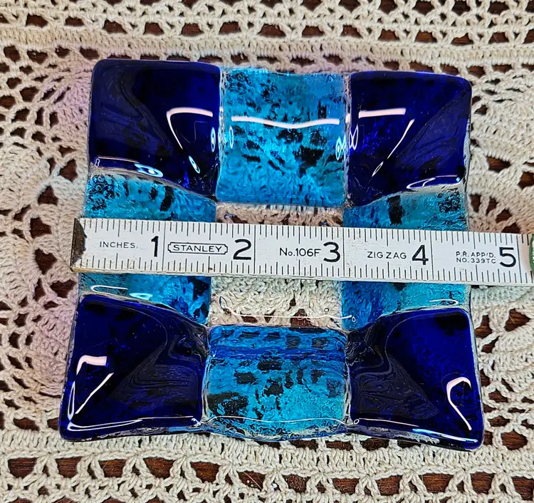 This beautiful fused glass dish is in excellent, used condition, with no appreciable chips, scratches or cracks. Measurements are depicted in the pictures of the item or listed in the description of the item. Please review the photos, as they are part of the item description. Photos will always reveal noticeable defects, as will my description. Any white blemishes that are not pointed out in this section are from the lighting that I use for my photos. If you need clarification, please reach out to me.